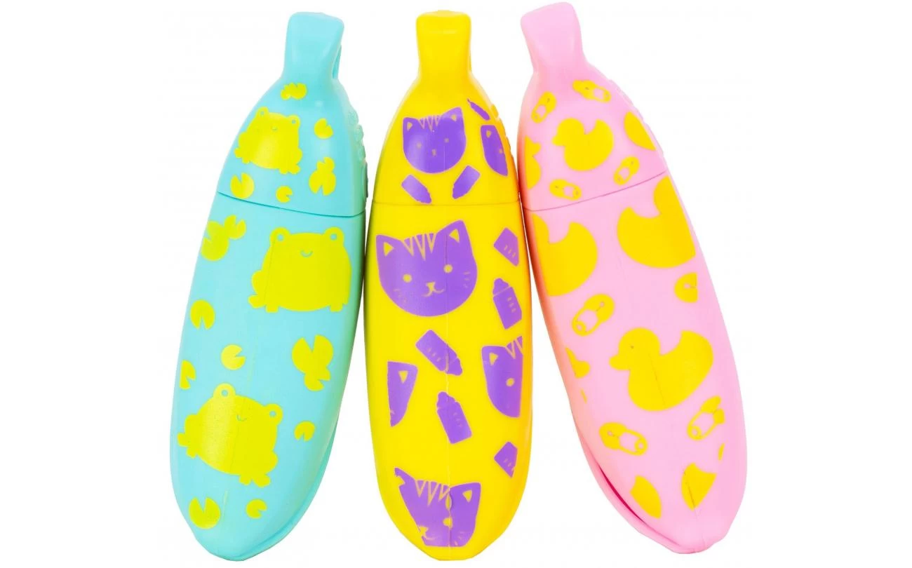 Druk meerdere bananen in elkaar om samen een tros te vormen. Elke banaan kan gepeld en weer opnieuw gesloten worden. Bovendien ruiken de Bananas heerlijk – naar snoepbanaantjes!