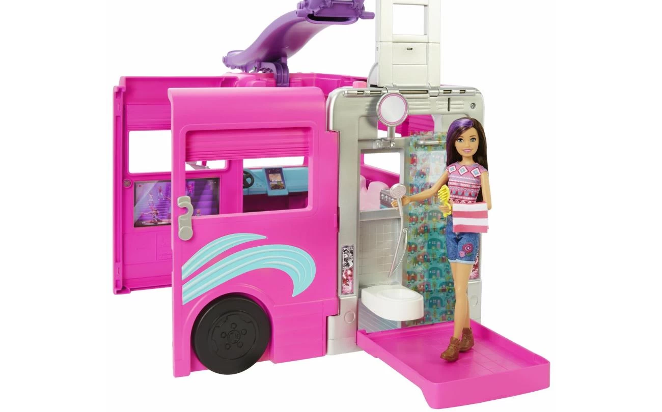 - Je rijdt het avontuur tegemoet met de Barbie Dreamcamper met een fantastische glijbaan, 7 speelplekken en alle denkbare spullen voor je ultieme kampeerreis.