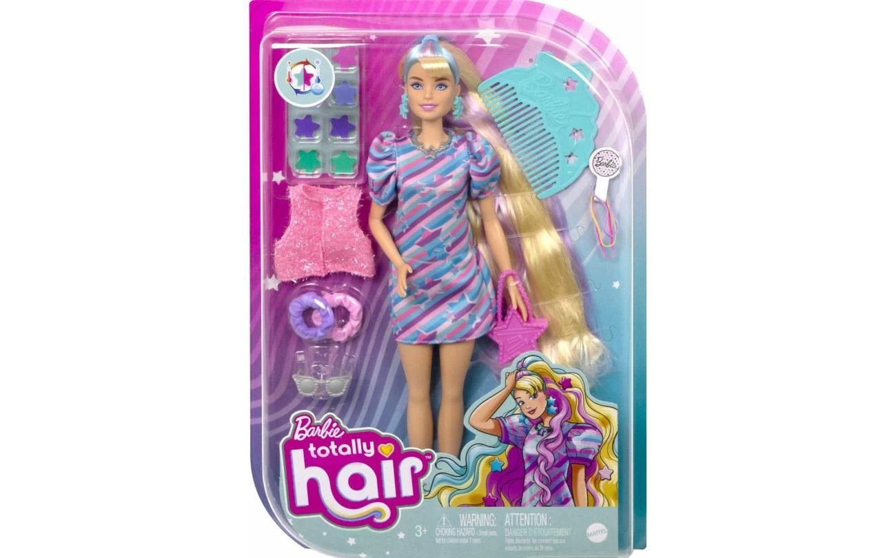 - De Barbie Pop met Eindeloos Lang Haar en sterrenthema straalt met haar eigen kapsel, haartextuur en modieuze outfit en is geïnspireerd op de best verkochte pop die 30 jaar geleden haar debuut maakte!