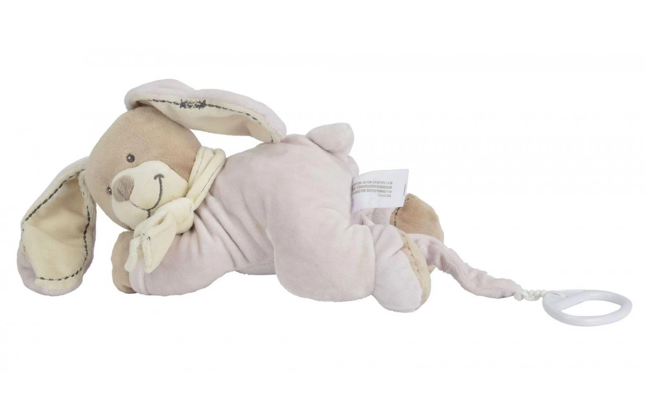 Zodra aan het snoer wordt getrokken, begint de melodie ‘Twinkle, Twinkle Little Star’. De 22cm muziekdoos is beschikbaar als een konijn of beer, in roze of blauw