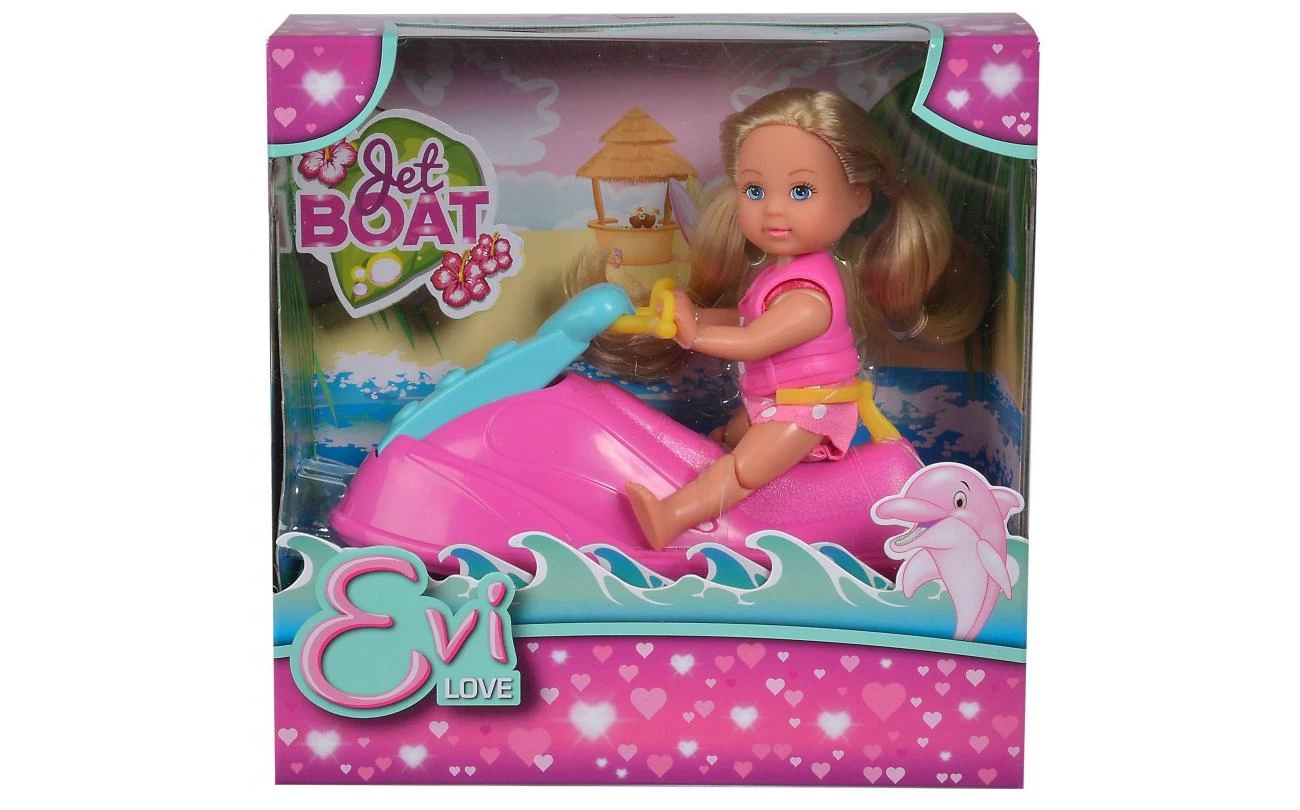Kleine Evi raast over het water op haar nieuwe jetski en heeft veel plezier! Het stuur van de Jet Boat is in hoogte verstelbaar waardoor Evi hem staand of zittend kan besturen. Maak jij met Evi de meest spectaculaire stunts op het water?