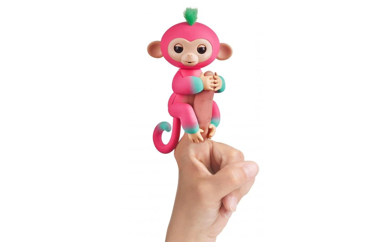 Jouw eigen tweekleurige Fingerlings robotaapjes Melon! Ze hangt graag aan je vinger en reageert wanneer je tegen haar praat en aanraakt. Ontdek ze allemaal!