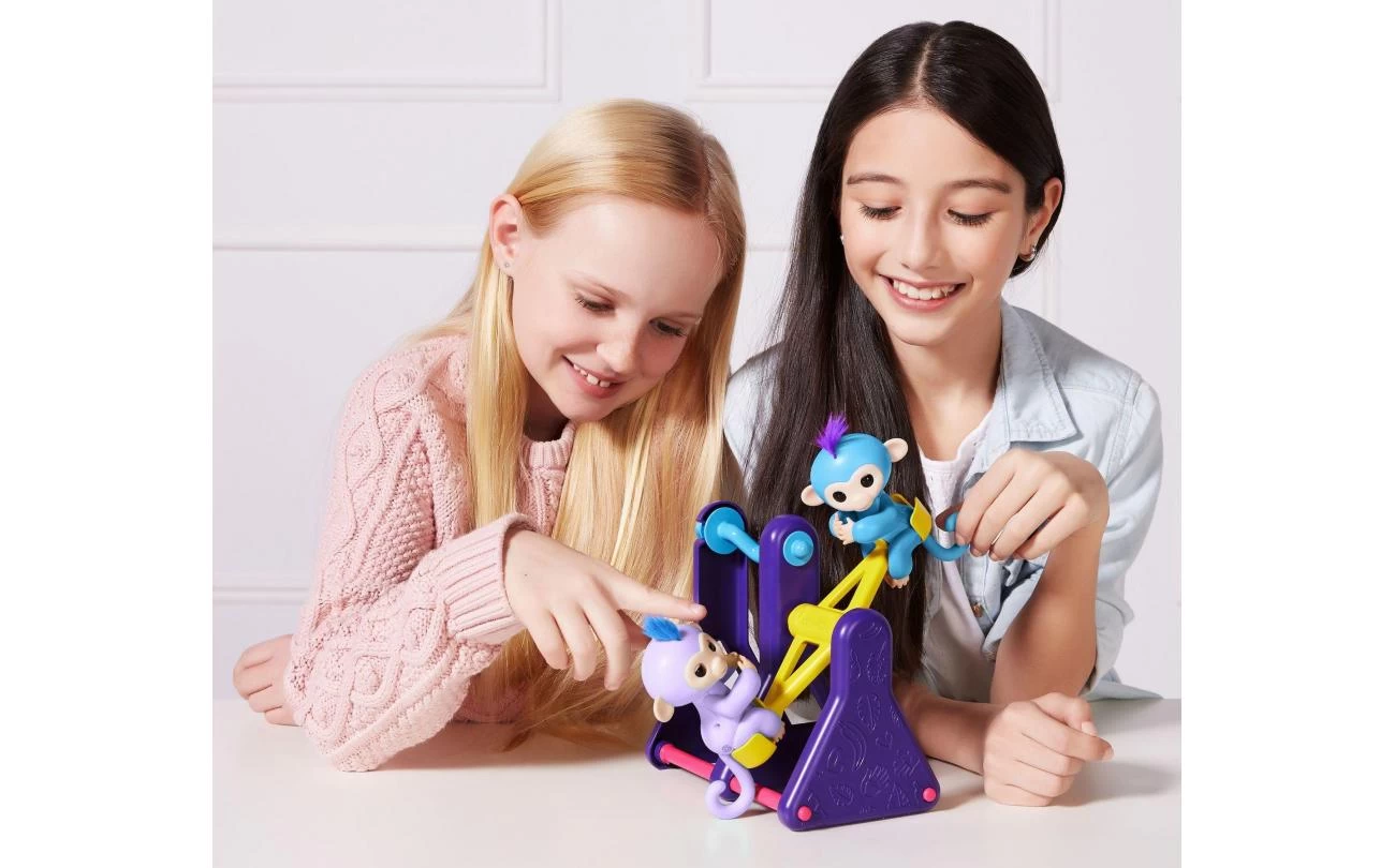 Deze vrolijke Wipwap speelset komt met twee sportieve Fingerlings aapjes. Laat jouw vriendjes lekker spelen; samen wipwappen, aan het klimrek hangen en klauteren. Ze hangen graag de aap uit; draai aan de hendel en ze draaien vrolijk in het rond. Ze houden ervan om ondersteboven te hangen!