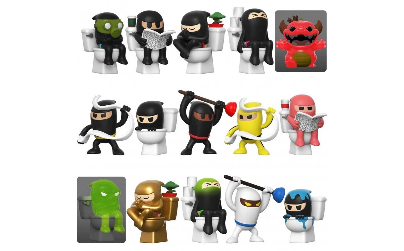 Deze ninjas proberen op de meest hilarische manieren uit de badkamer te ontsnappen. Of ze nu vechten met de toiletborstel en het wc-papier of proberen te mediteren over hun zaken, deze ninja’s zullen je zeker aan het lachen maken! Verzamel ze allemaal!