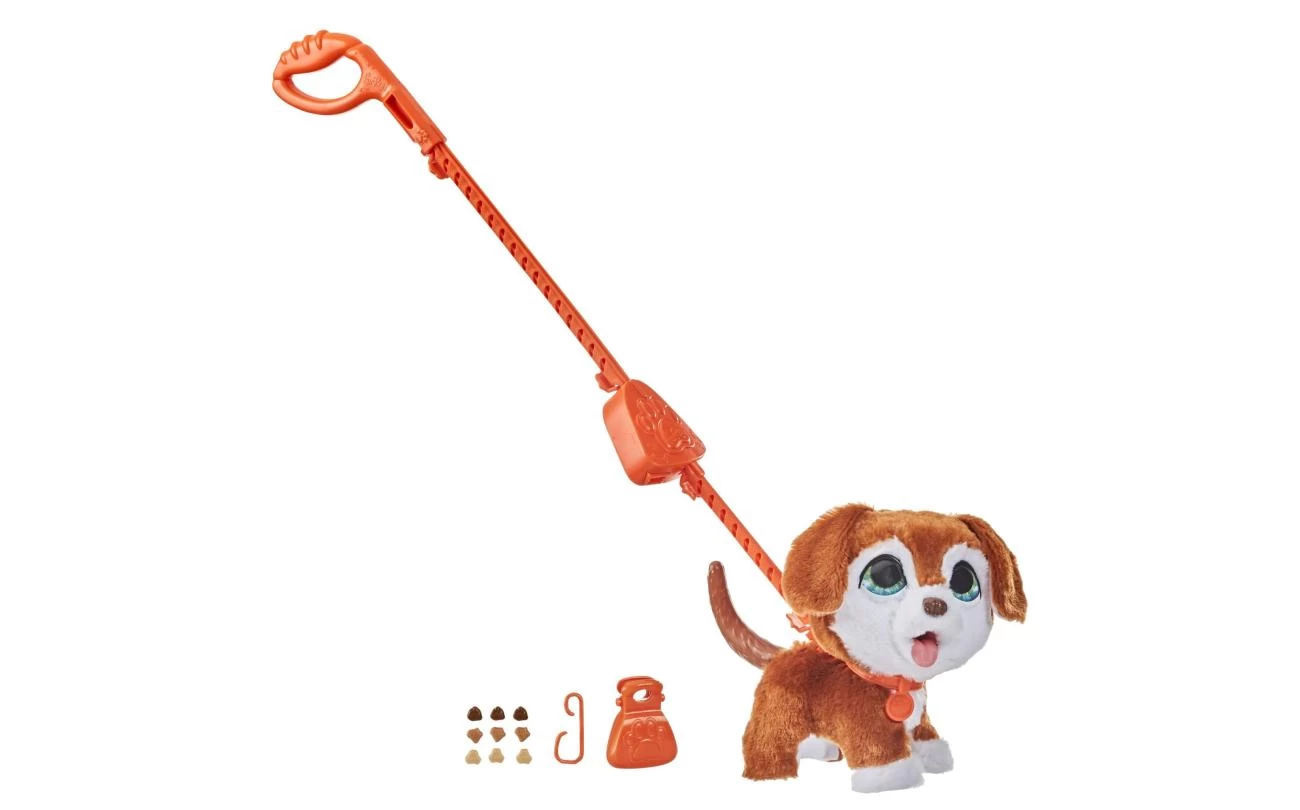 Wat is er leuker dan een huisdier uitlaten? Een huisdier uitlaten dat poept! Geef dit leuk diertje een paar van de inbegrepen snacks, zet de riem in elkaar en doe hem aan de riem voor de uitlaatbeurt. Terwijl je met hem loopt, begint hij zijn behoefte te doen en laat hij een spoor van poepjes achter! Gelukkig wordt het diertje geleverd met zijn eigen poepschep, zodat je de boel weer snel en gemakkelijk kunt opruimen. furReal-diertjes hebben een riem met koppelsysteem waarmee kinderen één of meerdere diertjes tegelijk kunnen uitlaten! Bij dit diertje dat poept is een afneembare riem inbegrepen om hem op de grond te laten lopen en een verbindingsstuk om maximaal 2 extra Poopalots Lil’ Wags toe te voegen (afzonderlijk verkrijgbaar). Als je wilt dat hij poept, geef je hem eerst de inbegrepen snacks. Dus, wie heeft er zin in een leuke wandeling?