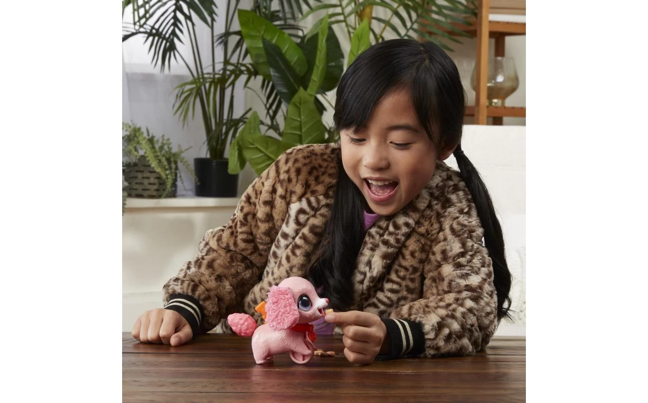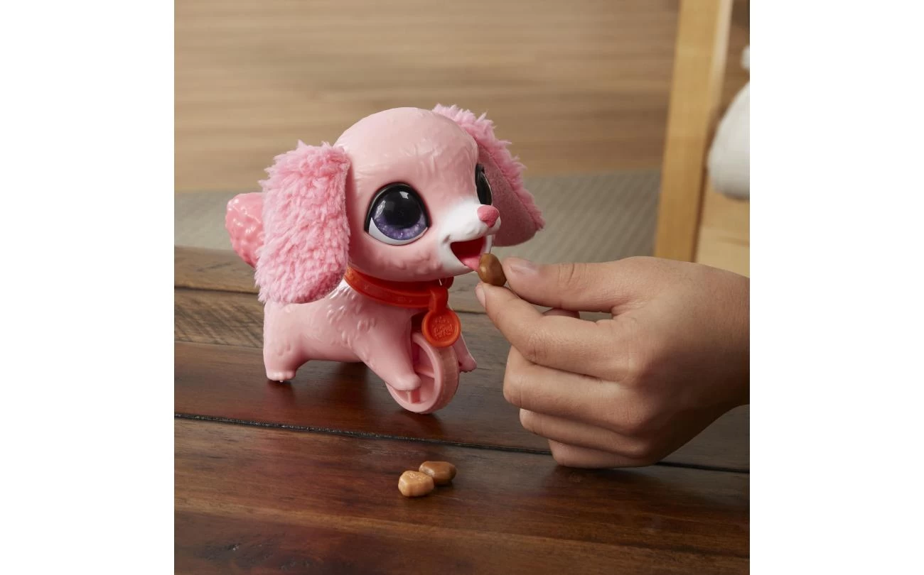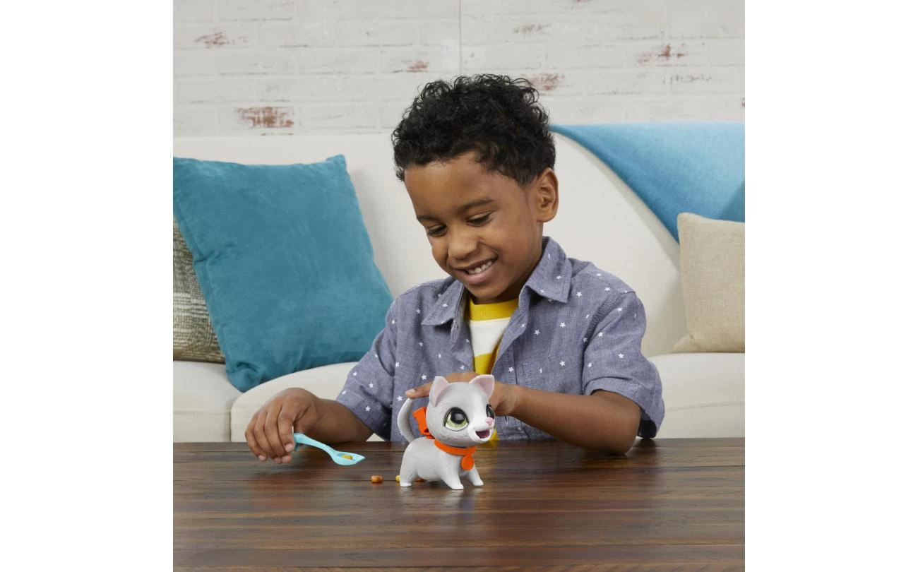 Met deze Fur Real PoopAlots kun je nu je eigen huisdier in huis nemen en uitlaten. Geef deze snoezige poes een aantal kattensnoepjes en doe haar riem aan om haar uit te laten. Duw de riem naar voren om de poes te laten lopen. Als zij snoepjes heeft gegeten zal ze tijdens het lopen haar behoefte doen en een spoor van poepjes achter laten. Ruim de poepjes netjes op met de bijgeleverde poepschep. Heel veel wandel plezier!