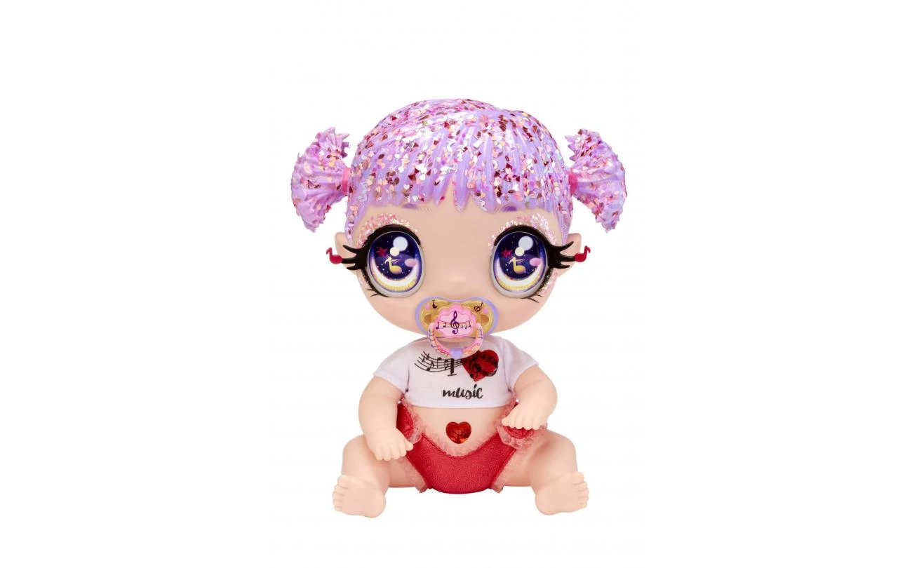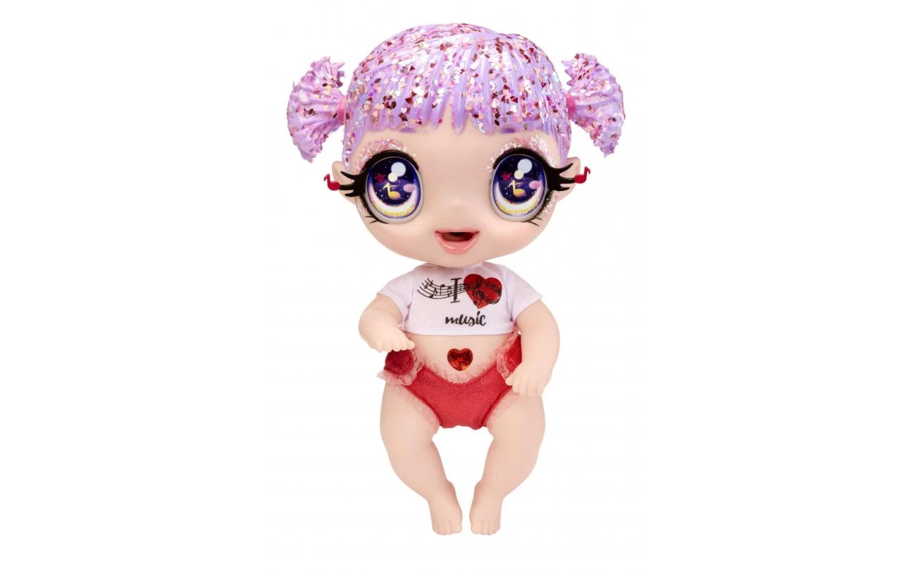 Volg de glinstering tot aan de zonsondergang en sla linksaf bij de maan om de magische wereld van de Glitter Babyz te ontdekken. Glitter Babyz zijn supermooie, glinsterende en magische baby’s met schattige grote ogen, sprankelende wimpers en glitters in hun haar. elke baby heeft een unieke persoonlijkheid die je terugziet in haar stijl. Ze hebben 3 magische kleurveranderingseffecten: (1) haar haarkleur verandert steeds opnieuw als je haar in bad stopt (badkuip afzonderlijk verkrijgbaar); (2) de magische shampoofles verandert telkens van kleur als je er ijskoud water aan toevoegt; (3) en voeg ijskoud water toe aan het sapflesje om het steeds weer magisch van kleur te laten veranderen. Hou van je pop en zorg voor haar om haar magie in leven en glinsterend te houden. Geef haar haar flesje, verschoon haar luier, stop haar in bad (badkuip afzonderlijk verkrijgbaar) en leg haar daarna neer voor een dutje. Je kunt steeds weer opnieuw voor je baby zorgen en haar vertroetelen. Alle accessoires van je magische Glitter Babyz kunnen opnieuw gebruikt worden, van haar flesjes tot de luiers. Inclusief verwijderbaar T-shirt, herbruikbare glitterluier, speen, sapfles met magisch kleurveranderingseffect, shampoofles met magisch kleurveranderingseffect, glinsterende baby met haar dat van kleur verandert. Adopteer vandaag nog alle vier de baby’s: Dreamia Stardust, Melody Highnote, Marina Finley en Selena Stargazer zijn klaar om met je mee naar huis te gaan. Kijk uit naar hun eenhoornvriendjes, die komen er binnenkort aan!