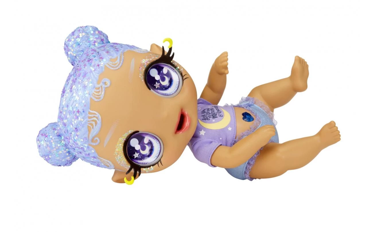 - GLINSTERENDE BABYPOP: volg de glinstering tot aan de zonsondergang en sla linksaf bij de maan om de magische wereld van de Glitter Babyz te ontdekken. Glitter Babyz zijn supermooie, glinsterende en magische baby’s met schattige grote ogen, sprankelende wimpers en glitters in hun haar