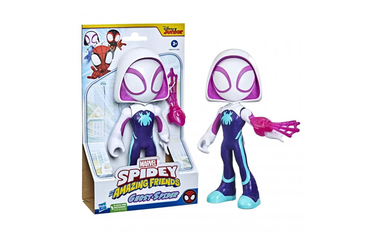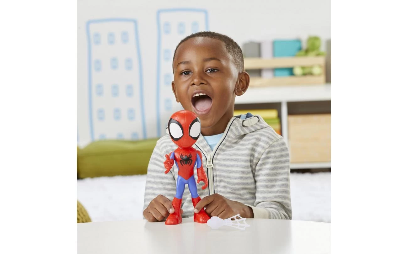 - SUPERHELDENPLEZIER: werp je web uit met deze supergrote heldenfiguur van 22,5 cm en accessoires gebaseerd op Spidey and His Amazing Friends, de animatieserie voor peuters van Marvel op Disney Junior. Kinderen vanaf 3 jaar zullen dol zijn op deze vriendelijke Spidey-speelfiguren