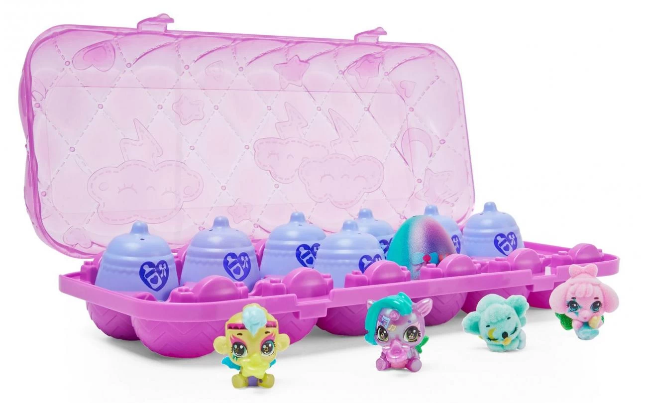 Voeg een dozijn Hatchimals CollEGGtibles toe aan je verzameling met de Shimmer Babies 12-pack eierdoos. Deze regenboogkleurige en sprankelende Hatchimals-figuren zijn allemaal superschattig en bevatten snoezige verrassingen, waaronder gloednieuwe babyeieren en een luikje om te zien welk geslacht ze hebben. Open de doos en ontdek acht personages in het ei en vier personages uit het ei. De Shimmer Babies 12-pack eierdoos is de enige plek waar je de slaperige Night-Night Nappers met een zachte, pluizige afwerking kunt vinden. In elk ei met babythema vind je een superschattige Shimmer Babies Hatchimal met een rammelaar, babyfles of fopspeen die je in de mond kunt houden of plaatsen. Breek de voorkant van elk ei om het verborgen geslacht van je personage te ontdekken. De binnenkant van het ei is roze voor een meisje en blauw voor een jongen. Ontdek je favoriete personages zoals Draggle, Unikeet, Penguala, Tigrette en meer in speelse houdingen. Je kunt zelfs een van de twee ultrazeldzame Shimmer Babies Pixies of de limited-edition tweeling uitbroeden. Bekijk de glittervleugels van je personage. de kleur van de vleugel geeft de geboortemaand aan. Verzamel 40 Shimmer Babies en voeg ze allemaal toe aan je collectie (elk afzonderlijk verkocht). Zodra je de hele doos met personages hebt laten uitkomen, verandert de thema-achtergrond van het deksel het eierdoosje in een speelset van een babykamer. Elk vakje is de perfecte plek om te dutten voor je nieuwe Shimmer Babies. Speel met je personages in de doos of sluit de doos en neem je vriendjes overal mee naartoe. Voor nog meer manieren om te spelen, kun je je Shimmer Babies verzorgen met de Pixies Babysitters (elk afzonderlijk verkocht) en de eibodem op magische wijze veranderen in een wandelwagen of mobiel met het verrassingsaccessoire, dat alleen in het Multipack (afzonderlijk verkocht) te vinden is. Het accessoire kan op de bodem worden geklikt om je fantasiespel nog leuker te maken. Hatchimals CollEGGtibles zijn de perfecte cadeaus voor meisjes vanaf 5 jr. Neem een dozijn Hatchimals CollEGGtibles-babypersonages mee naar huis met de Shimmer Babies 12-pack eierdoos.