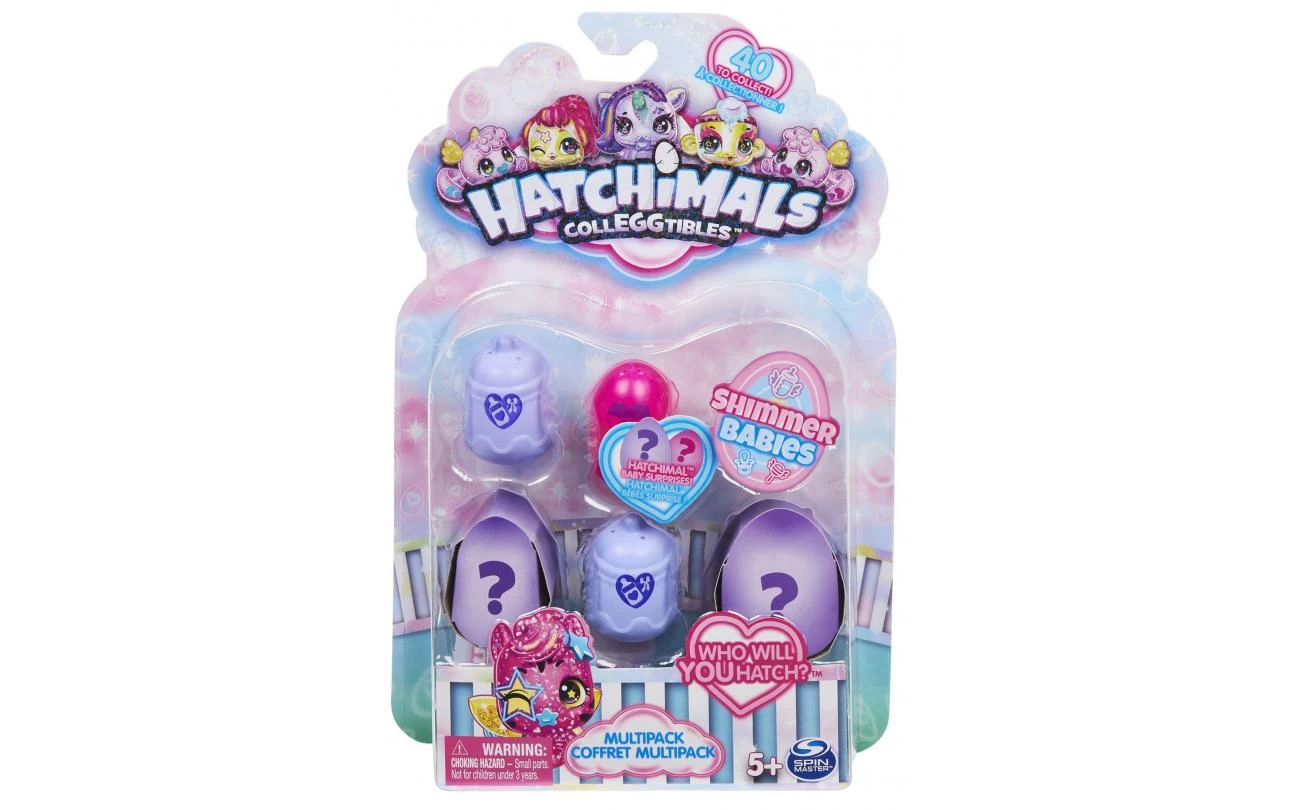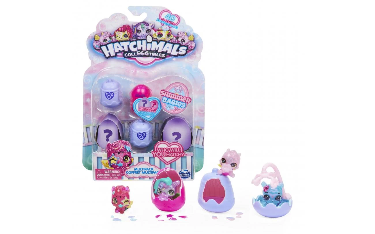 Maak kennis met de Hatchimals CollEGGtibles Shimmer Babies. Deze regenboogkleurige en sprankelende Hatchimals-figuren zijn allemaal superschattig en bevatten snoezige verrassingen, waaronder gloednieuwe babyeieren en een luikje om het geslacht te ontdekken. Het Shimmer Babies Multipack wordt geleverd met drie personages in het ei, plus één personage uit het ei en een mysterieuze wandelwagen of mobiel accessoire verborgen in de verpakking. In elk van de eieren met babythema van de Multipack vind je een superschattige Shimmer Babies Hatchimal met een rammelaar, babyfles of fopspeen die je in zijn of haar mond kunt houden of plaatsen. Breek de voorkant van elk ei om het verborgen geslacht van je personage te onthullen. De binnenkant van het ei is roze voor een meisje en blauw voor een jongen. Ontdek je favoriete personages zoals Draggle, Unikeet, Penguala, Tigrette en meer in speelse houdingen. Je kunt zelfs een van de twee ultrazeldzame Shimmer Babies Pixies of de limited-edition tweeling uitbroeden. Bekijk de set glittervleugels van elk personage. de kleur van de vleugel geeft de geboortemaand aan. Verzamel 40 Shimmer Babies en voeg ze allemaal toe aan je collectie (elk afzonderlijk verkrijgbaar). Voor nog meer manieren om met je Shimmer Babies te spelen, transformeer je op magische wijze de eibodems van de Multipack in een wandelwagen of mobiel – het is een verrassing welk accessoire je krijgt. Het accessoire kan direct op de bodem worden geklikt, perfect voor het bedenken van verhalen. En geniet van de babykamer met het 12-pack (afzonderlijk verkocht) en zorg voor je Shimmer Babies met de Pixies Babysitters (elk afzonderlijk verkocht). Hatchimals CollEGGtibles-speelgoed voor kinderen zijn de perfecte cadeaus voor meisjes vanaf 5 jr. Broed je eigen baby Hatchimals CollEGGtibles uit met het Shimmer Babies Multipack.