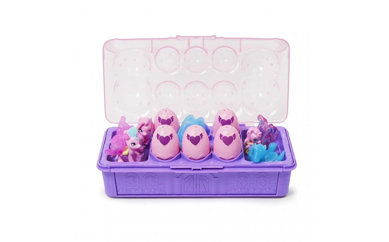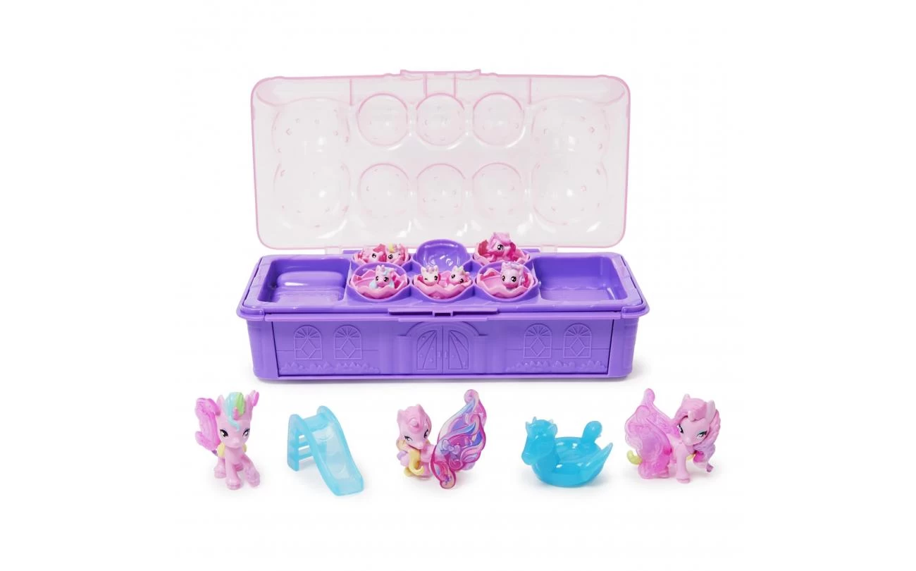 - Breid je Hatchimals-collectie direct uit met de kapperseenhoornfamilie. De doos bevat 10 schattige actiefiguren – 2 ouders, 3 grote kinderen, 1 klein kindje en 4 baby’s