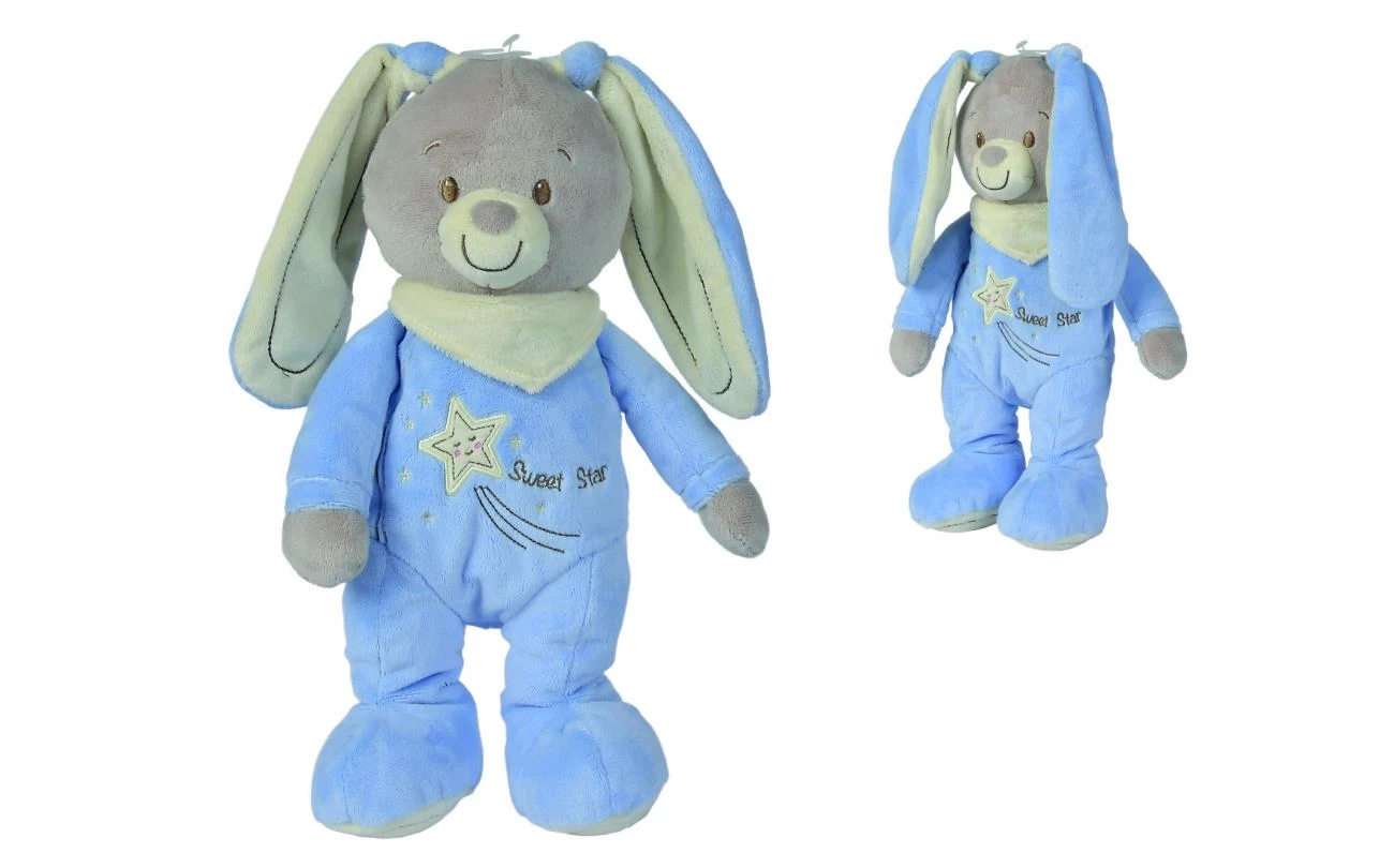 Lichtblauw Nicotoy konijn Raphael is zacht, lief en een hele goede vriend voor je kind! Ze houdt van knuffelen en reist overal met je kapoen mee. Laat je meevoeren op de zoetste dromen, want Raphael houdt je ’s nachts veilig en warm. De knuffel is 33 cm groot en gemaakt uit gerecycleerd materiaal.