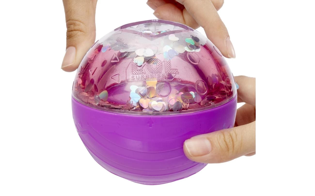- 3 STAPPEN VOOR EEN SCHUIMPARTY: giet de inhoud van het gebroken hartje plus water in de bovenkant van je L.O.L. Surprise-bol, draai aan de bovenkant van de bol en kijk hoe het bruisende glitterschuim van kleur verandert en je eigen verzamelpop en verrassingen onthult!