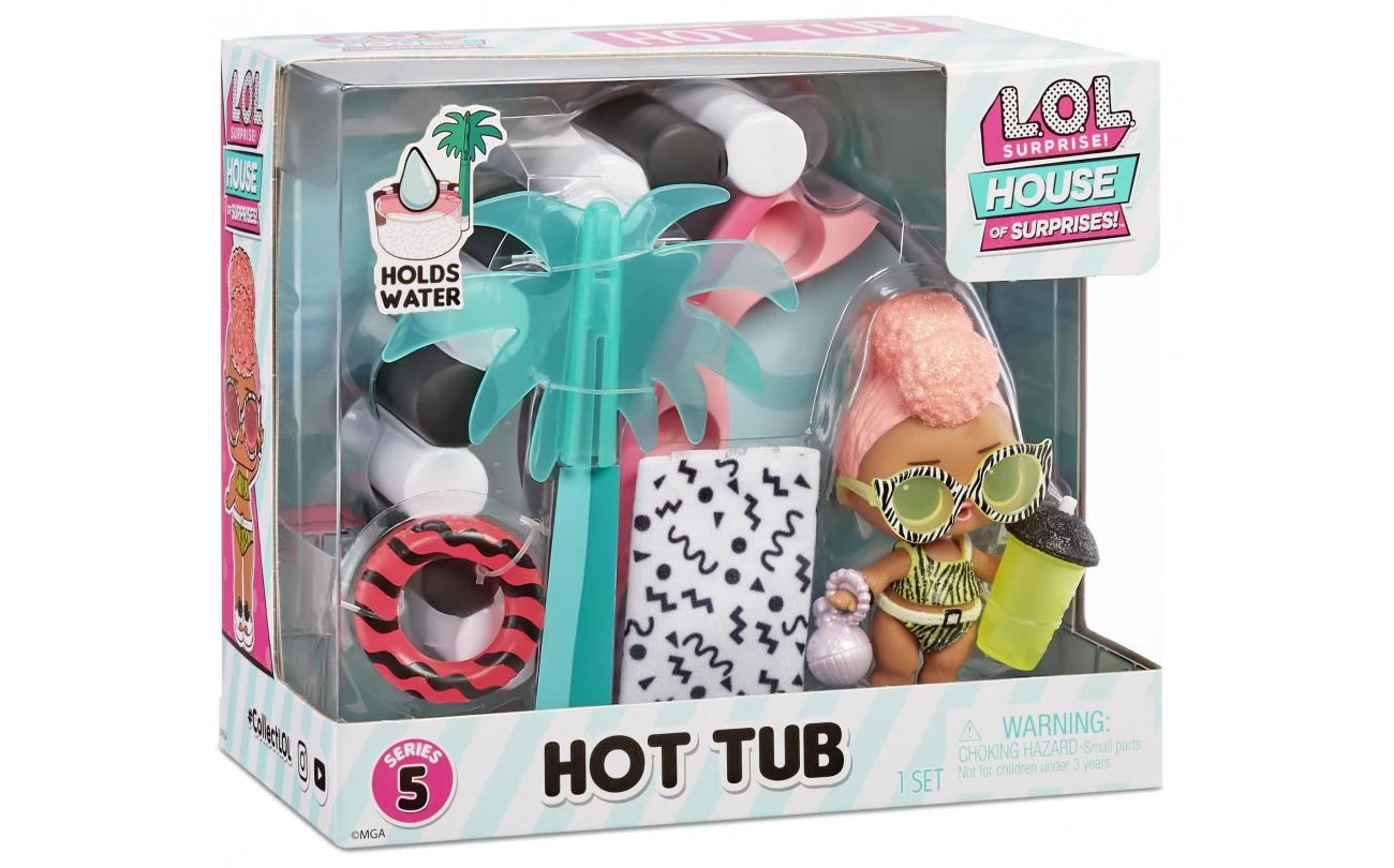 • VERZAMEL alle 4 de nieuwe en fantastische L.O.L.-speelsets en bouw een wereld om in te spelen met het L.O.L. Surprise! O.M.G. House of Surprises-poppenhuis. De speelsets omvatten de Kleine speelhal, de Ronde sofa, de Hottub en de Snackbar.