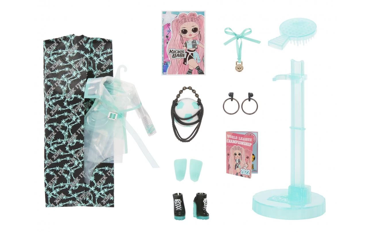 • PAK 20 VERRASSINGEN UIT inclusief een O.M.G. Sports-modepop, een fenomenale outfit, schoenen, accessoires met sportthema, een haarborstel en een poppenstandaard in een unieke uitpakervaring.