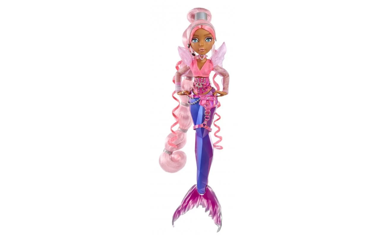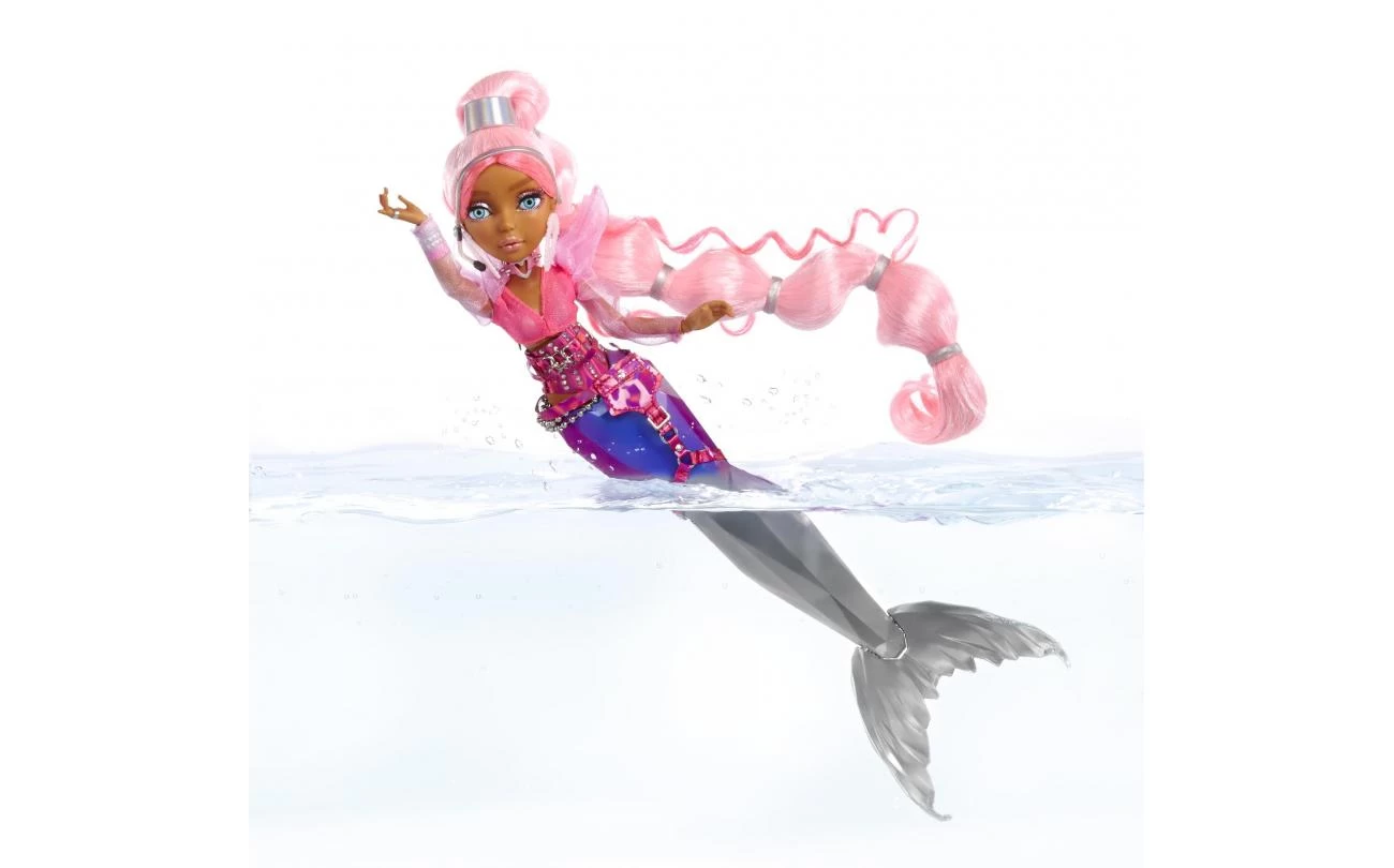 Voorbij de golven, onder de branding, het diepe blauw in… Volg de fabuleuze vinnen van de Mermaze Mermaidzâ„¢ om iets fantastisch te ontdekken! Kishiko, Jordie, Harmonique, Riviera, en Shellnelle zijn zeemeermin-BFF’s met eigen persoonlijkheden en waanzinnige van kleurveranderende staarten! elke Mermaze Mermaidzâ„¢-pop heeft een unieke, geschubde staart die magisch van kleur verandert als je hem onder water dompelt. De staart van Harmonique verandert van metallic paars en felroze naar zilverkleurig chroom bij contact met warm water. Haar staart functioneert ook als standaard als je haar vin 90 graden buigt, zodat ze echt zelfstandig kan staan! Elke Mermaze Mermaidzâ„¢-pop is buigbaar bij de nek, schouders, ellebogen, polsen, bovenlichaam, taille en vin om verschillende houdingen aan te kunnen nemen!