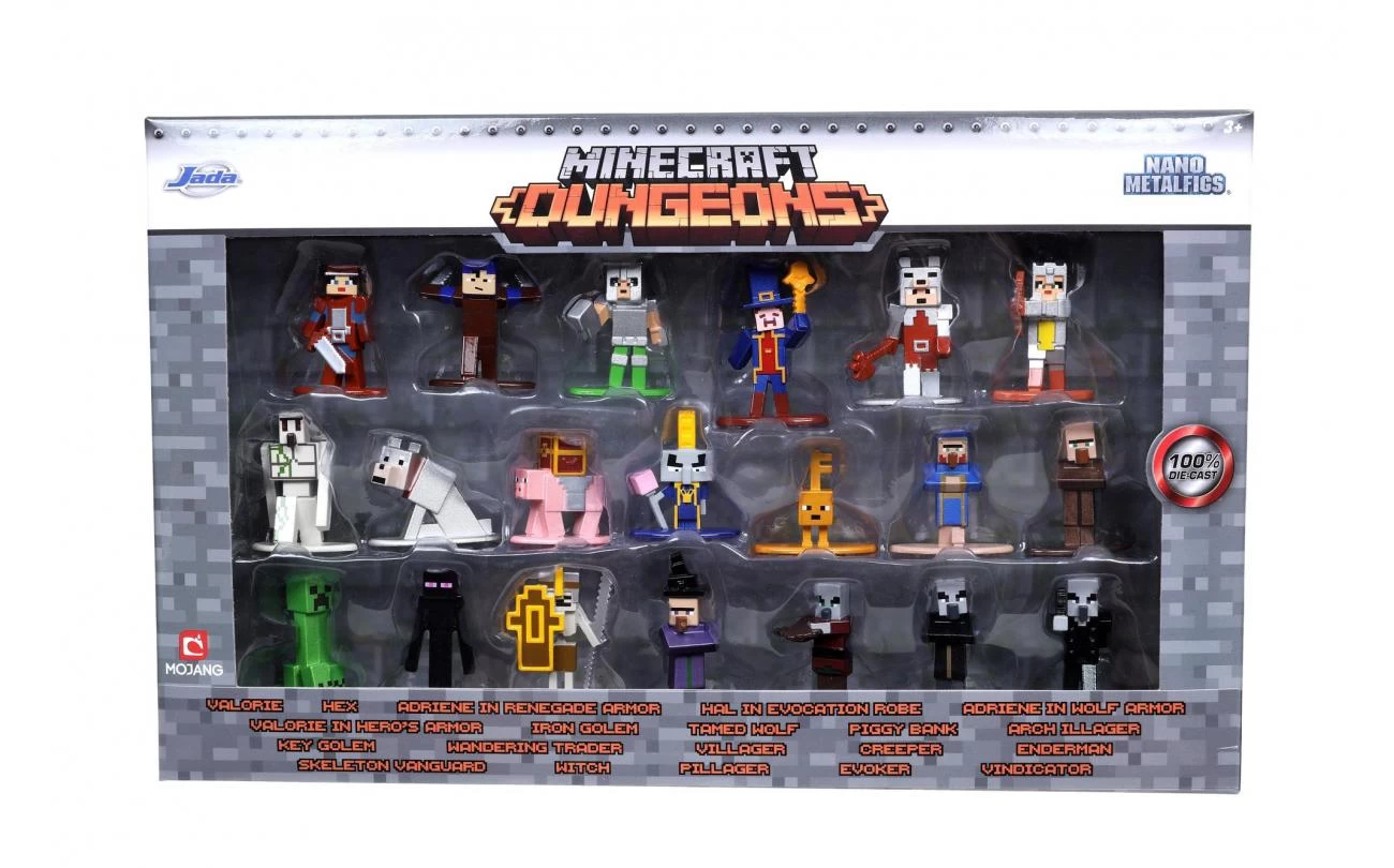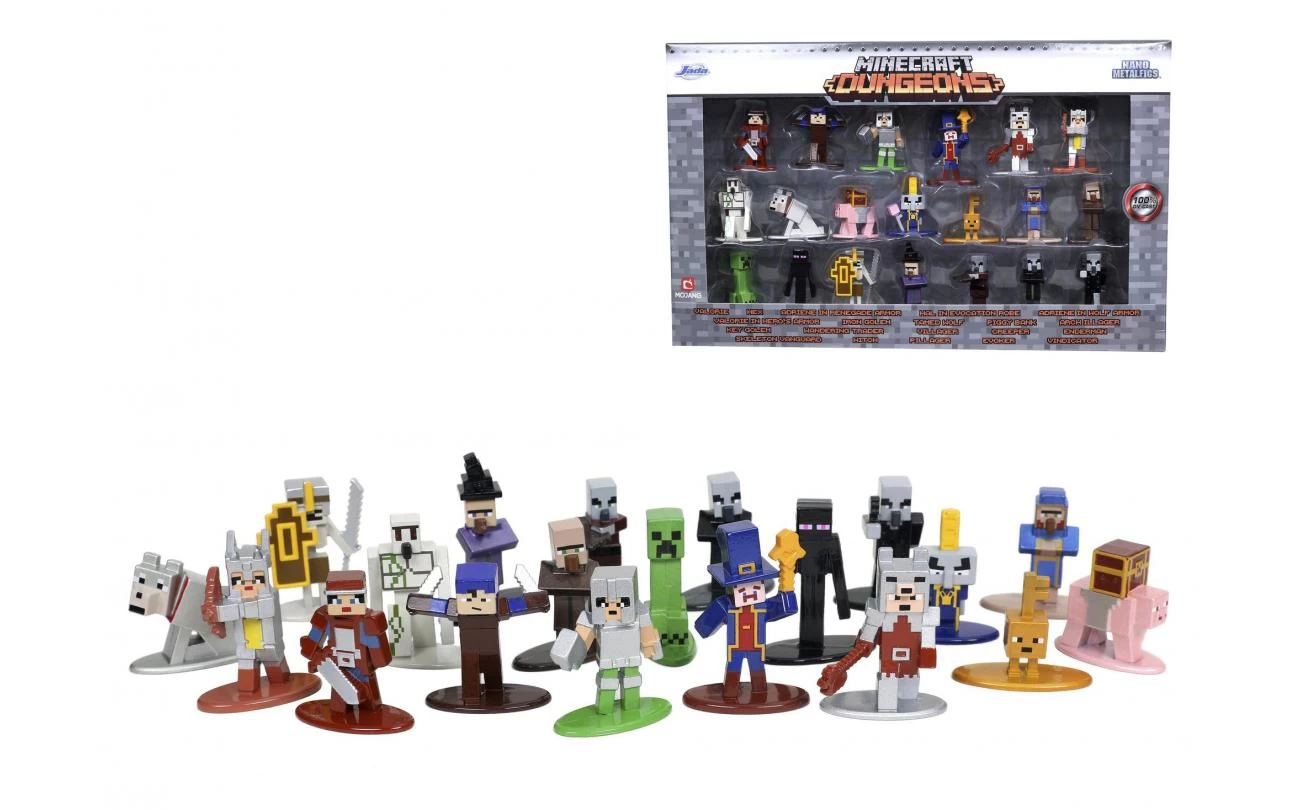 Jada diecast Nano-figuren Dungeons and Dragons wave 4. Dit is een product met een officiële licentie, rechtstreeks uit de Minecraft PC-game. Vervaardigd uit duurzame materialen zoals 100% gegoten metaal en premium metallic lakken, de kwaliteit van deze figuren valt niet te ontkennen. Ze zijn ongeveer 4cm en hebben een gewicht van ongeveer 30 g. Deze 20-pack bevat zeer verzamelbare figuren, mix en match de verschillende personages uit de Minecraft-wereld. Geschikt vanaf 3 jaar.