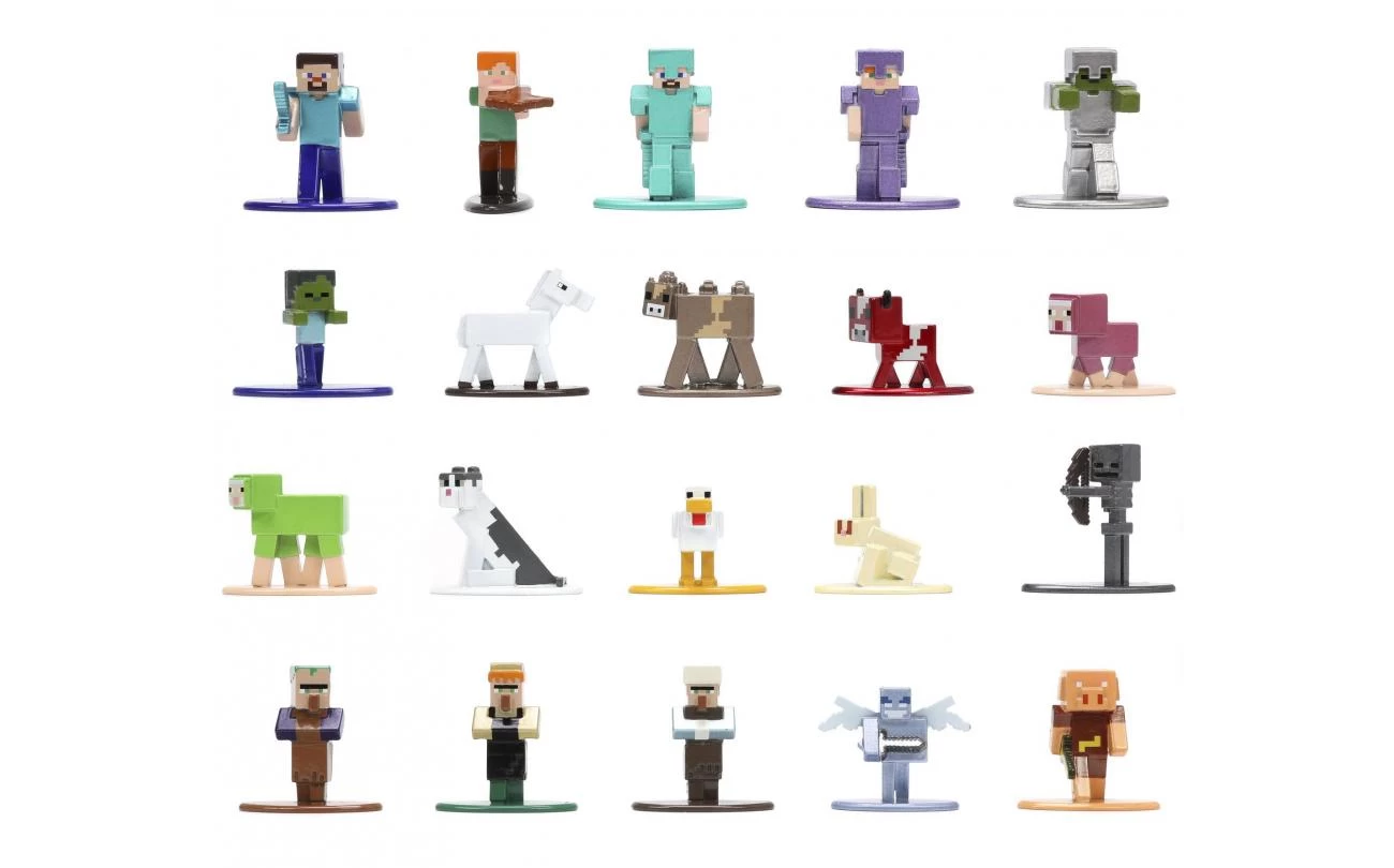 Deze 20-pack bevat zeer verzamelbare figuren, mix en match de verschillende personages uit de Minecraft-wereld. Vervaardigd uit duurzame materialen zoals 100% gegoten metaal en premium metallic lakken, de kwaliteit van deze figuren met officiële licentie valt niet te ontkennen. Ze zijn ongeveer 4cm en hebben een gewicht van ongeveer 30 g.