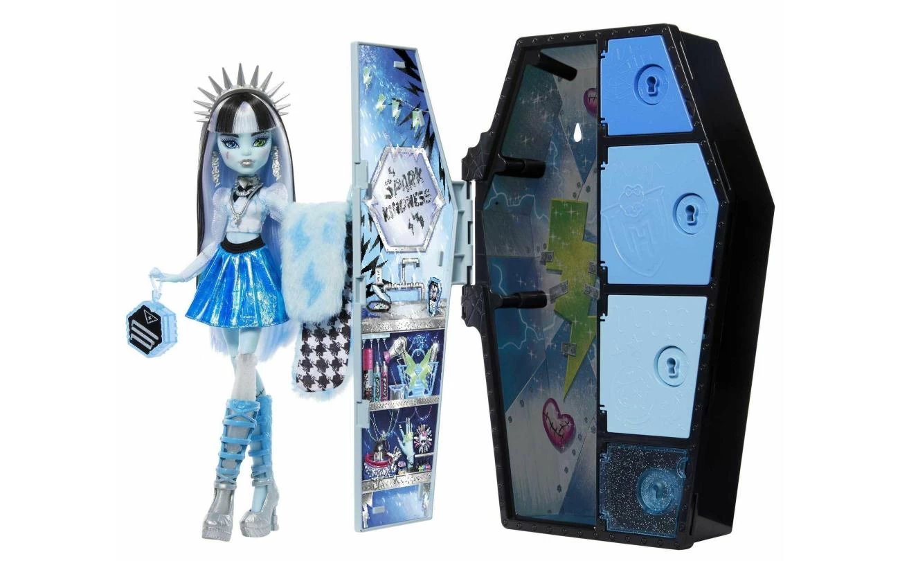 - Frankie Stein straalt met haar modieuze verrassingen en paarlemoeren details als een filmster in een griezelfilm in deze Fearidescent editie van Skulltimate Secrets! Open de kluis – als je durft.