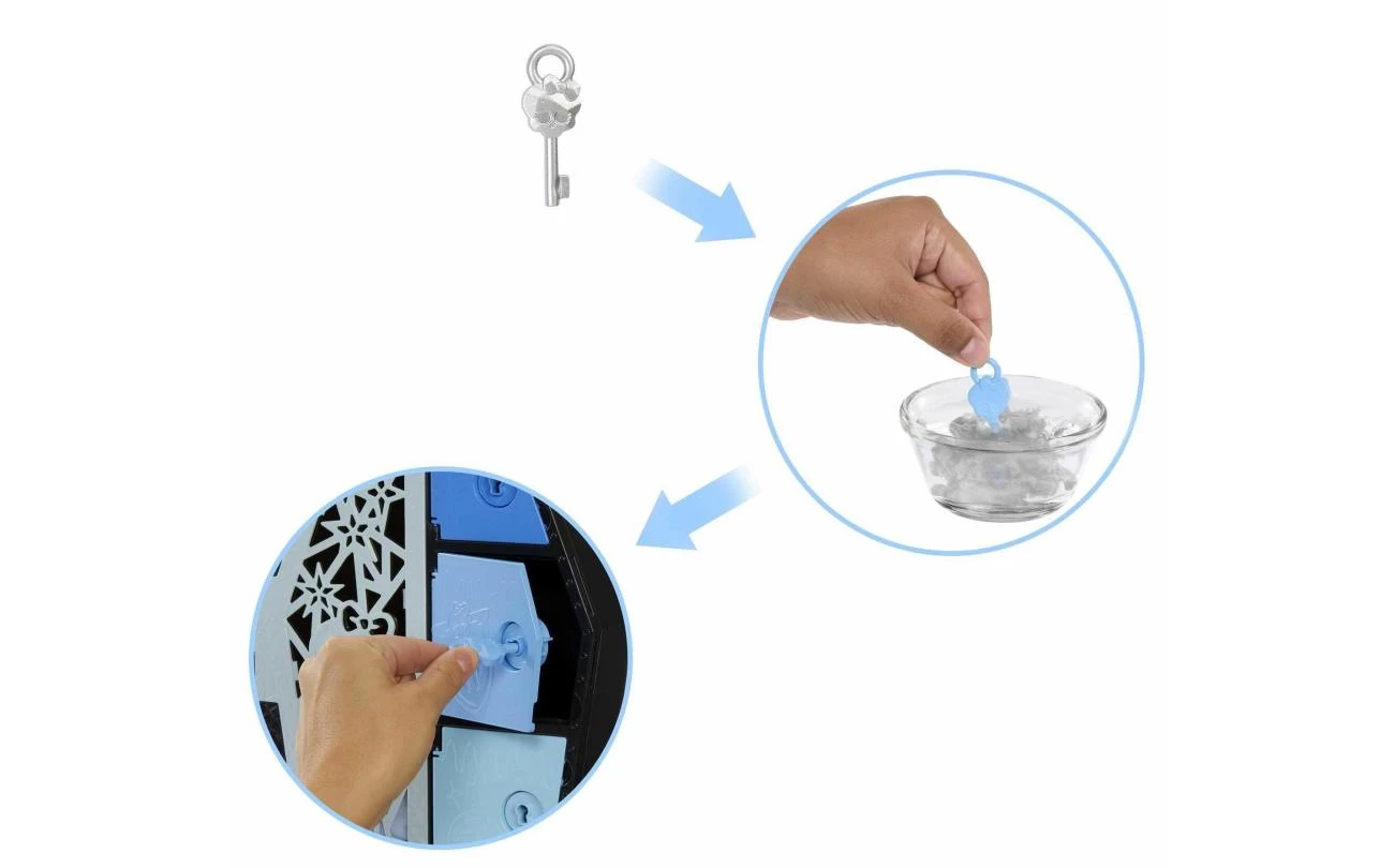 - Kun je een geheim bewaren? Was de zwarte coating van de vier sleutels af om de kleuren eronder te ontdekken. Open vervolgens alle vier de laadjes en ontdek de verborgen items die erin liggen.
