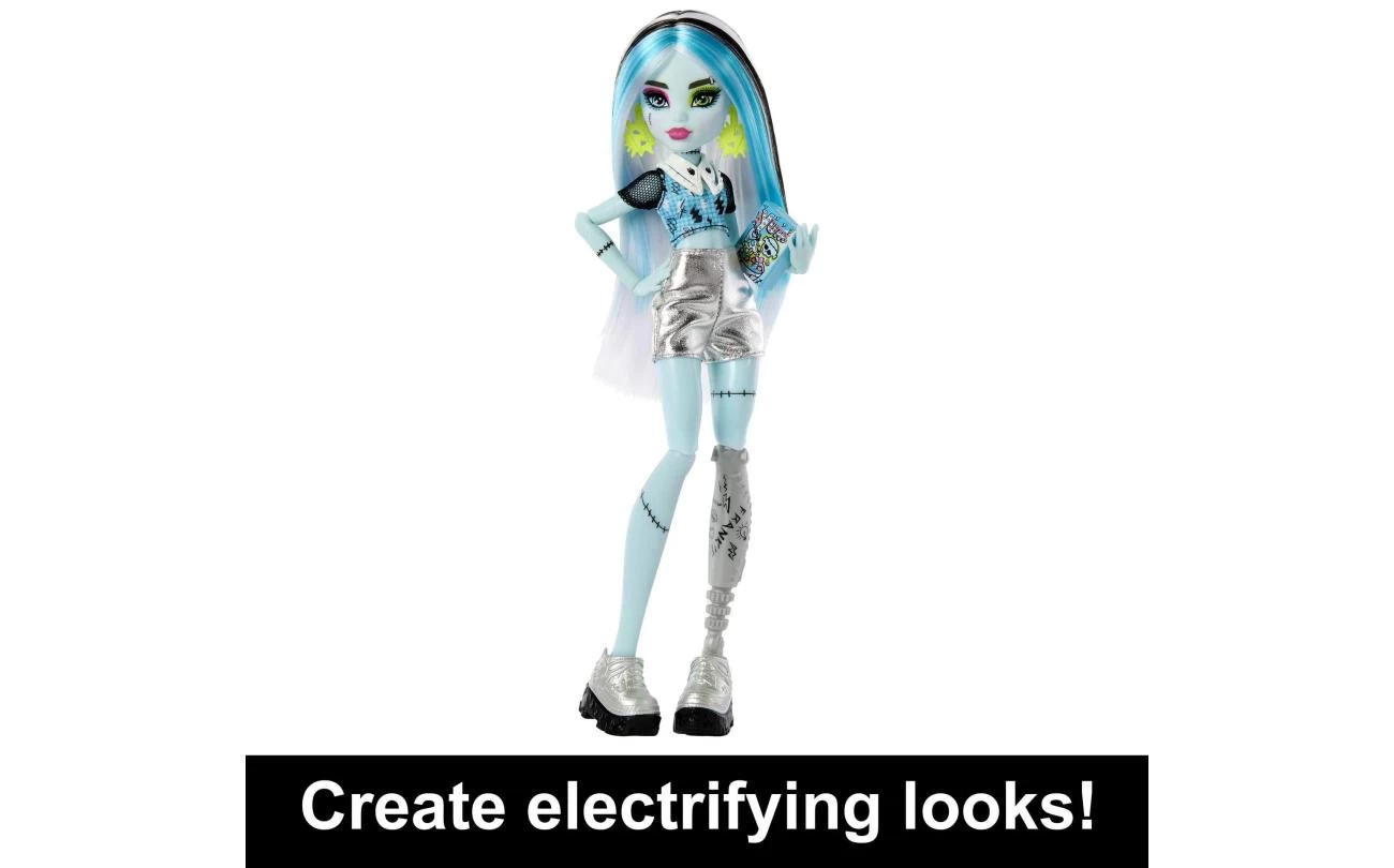 - De vlammende Frankie Stein heeft gestreept haar en monsterlijke kleding en accessoires die je kunt mixen en matchen.