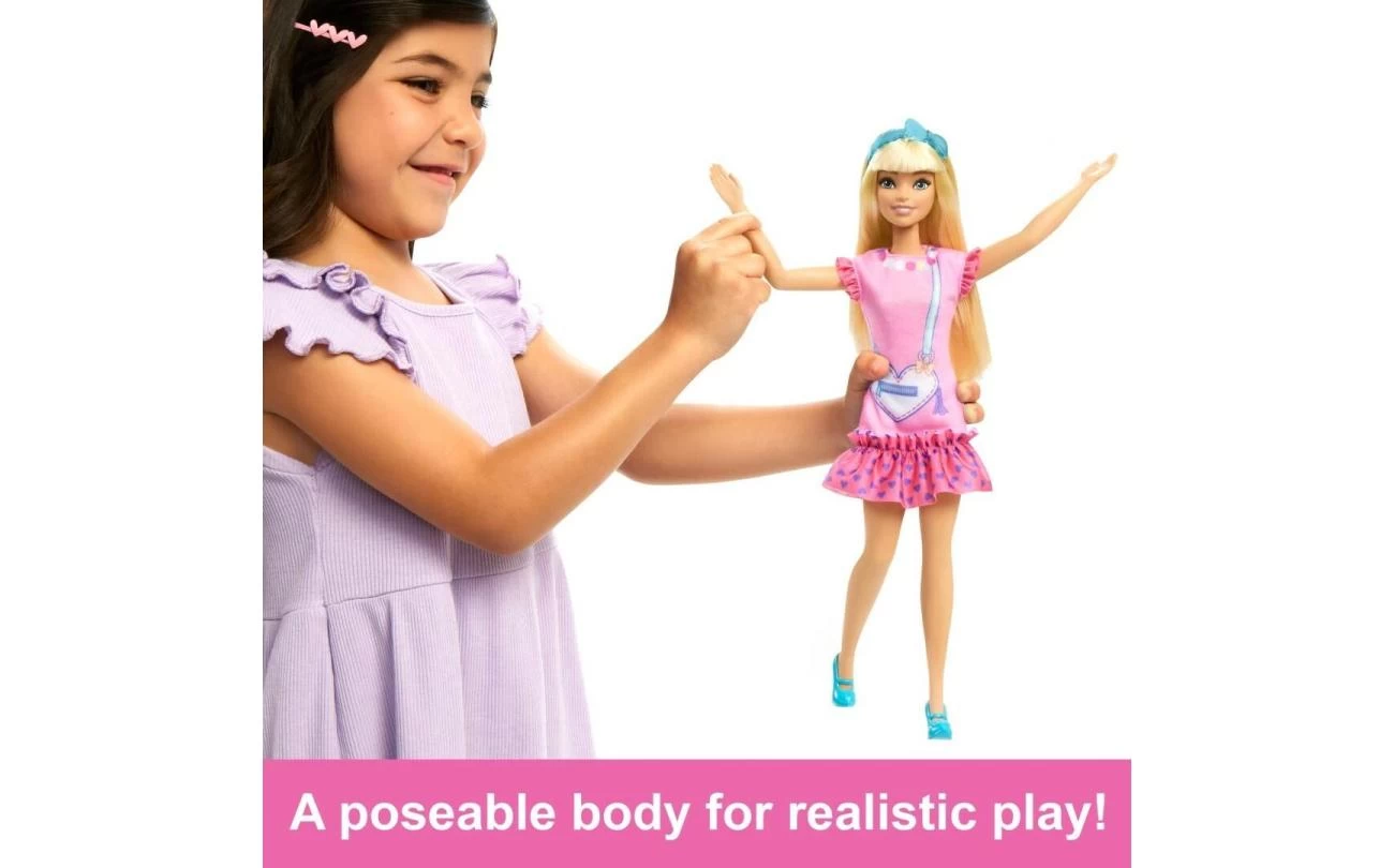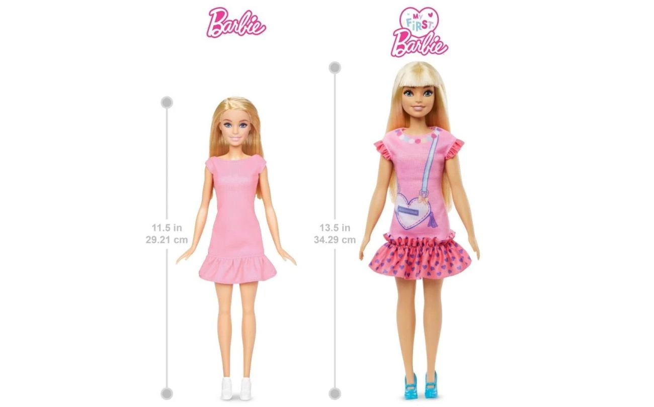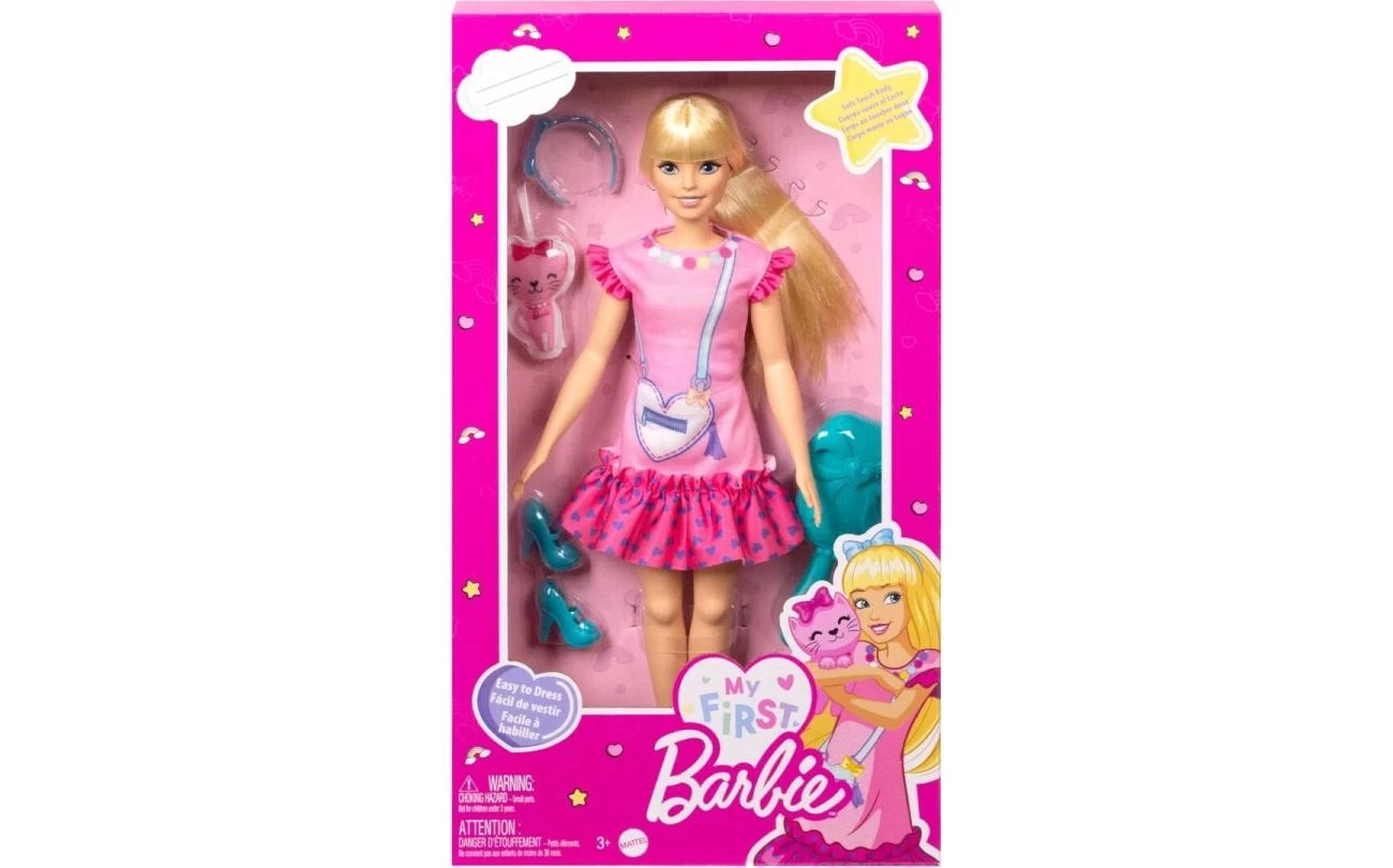 Maak kennis met Mijn Eerste Barbie, een collectie speciaal voor kleuters! Deze snoezige serie bevat grotere poppen met beweegbare, zachte lijfjes die gemakkelijk aan te kleden zijn. Kids kunnen eindeloos verhalen over vriendschap of mode bedenken met deze schattige poppen! Per stuk verkrijgbaar en niet overal leverbaar. Barbie poppen kunnen niet los staan. Kleuren en versieringen kunnen variren.
