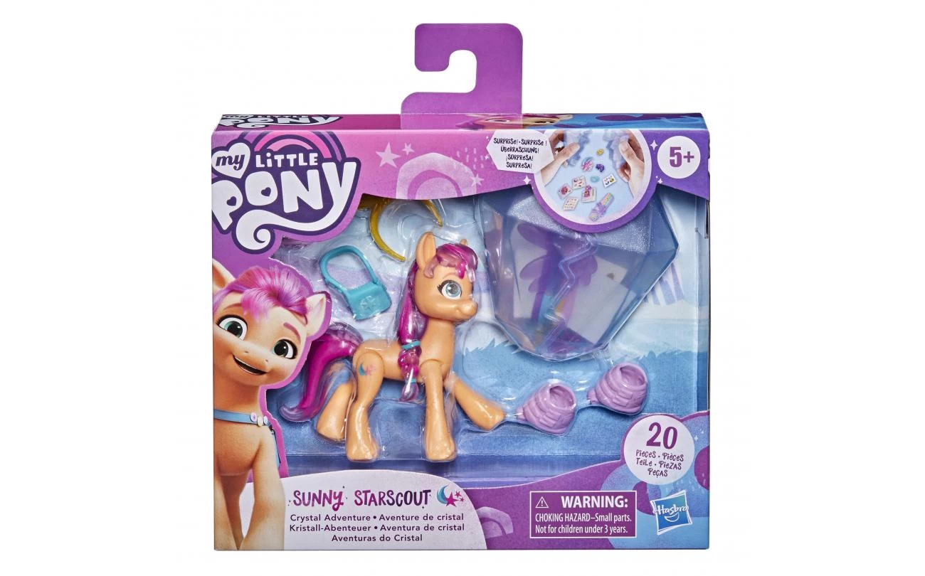 Ga op een magisch kristalavontuur!? Ontdek de magie van verrassingen geïnspireerd op de film My Little Pony: A New Generation met op een personage geïnspireerde verrassingsaccessoires. Het Kristal Avonturen Ponies-assortiment bevat personagepacks met 20 onderdelen, inclusief een ponyfiguur van 7,5 cm, accessoires, stickers, bedels en meer. Bij elke figuur hoort ook een vriendschapsarmband met een thema, die kinderen kunnen versieren en dragen.