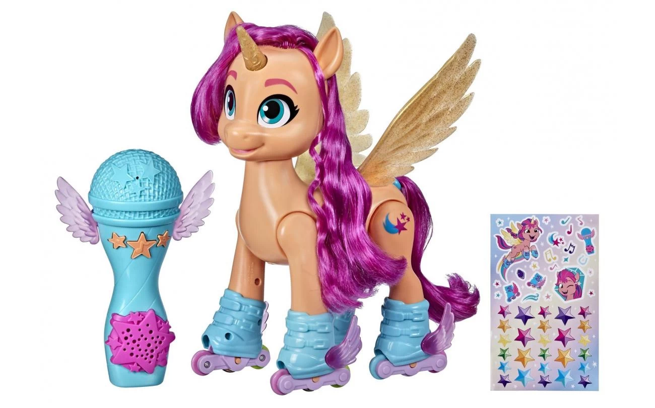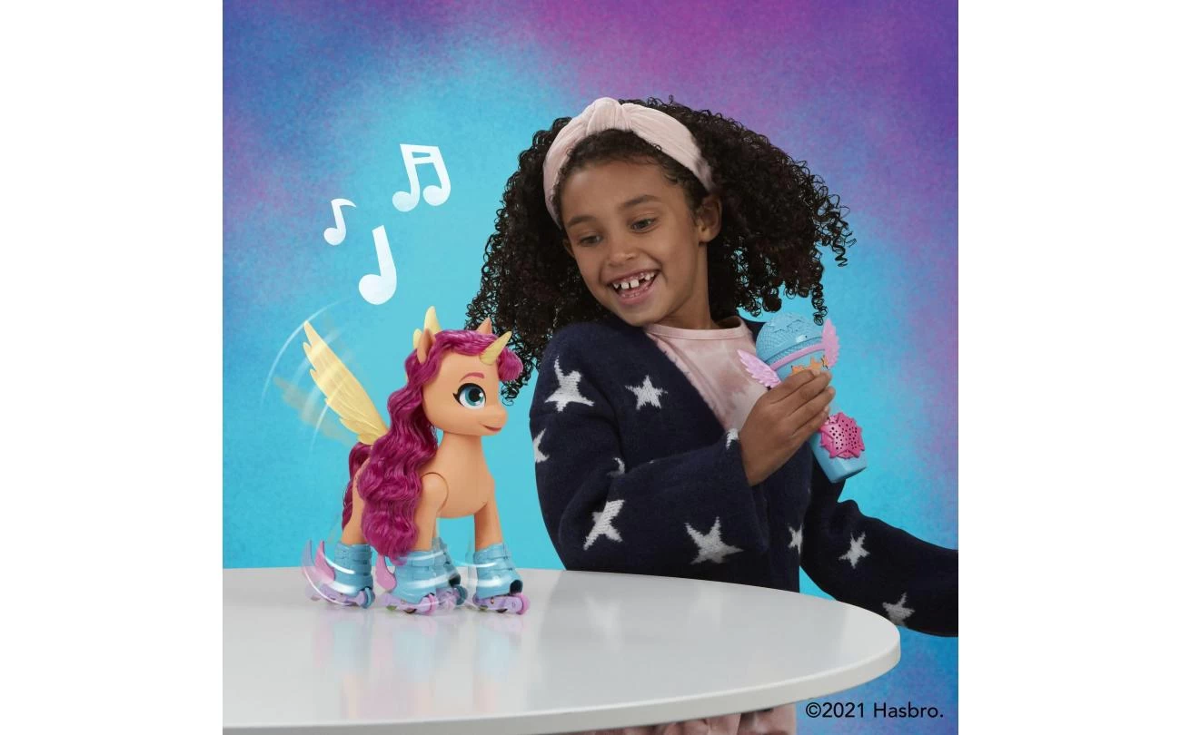 - OP DE FILM GEÏNSPIREERDE MUZIEK: De speelfiguur Sunny zegt zinnen die zijn geïnspireerd op de film My Little Pony: A New Generation en ze neuriet delen van haar hitnummer ‘Gonna Be My Day’ uit de film. Kinderen kunnen in de draadloze microfoon zingen