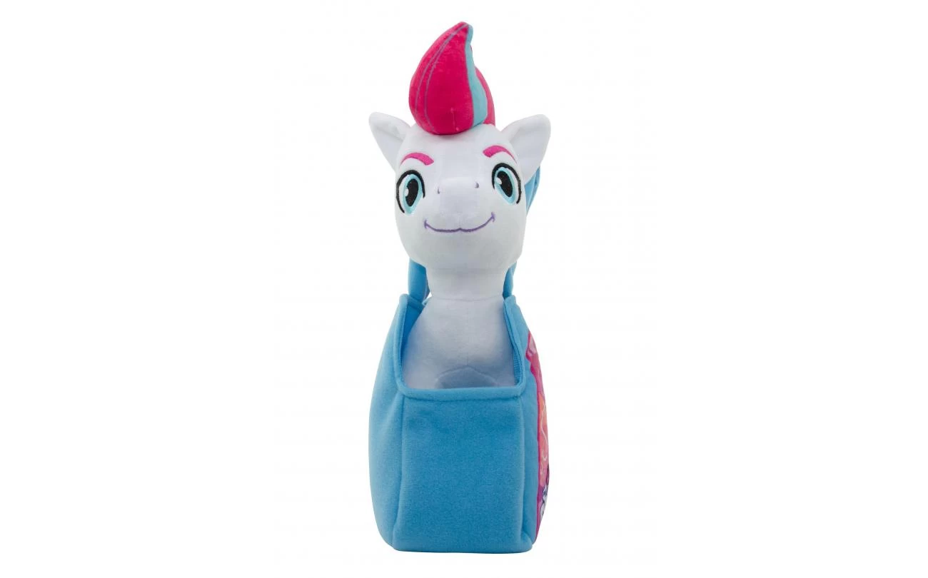 Magische pony Zipp Storm is een atletische prinses uit het Zephyr-gebergte. Streeft ernaar om trouw te zijn aan zichzelf en anderen te inspireren hetzelfde te doen. Ze is geïnteresseerd in wetenschap en sport. De Zipp pluche is precies gemaakt in de gelijkenis van het personage met dezelfde naam uit de tekenfilm My Little Pony. Ze heeft roze manen en haar kenmerkende bliksemschicht met een kroon op haar heup. Beleef onvergetelijke uren plezier in het gezelschap van pluche Zipp, met de trendy tas is het handig om de ​​pony mee te nemen.
