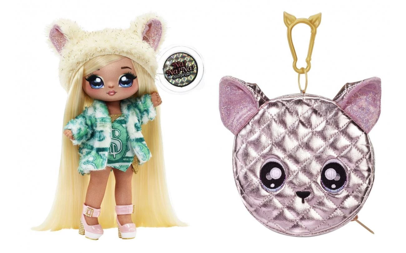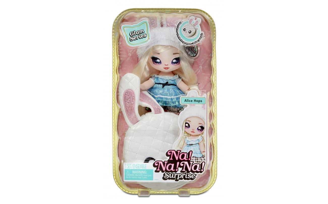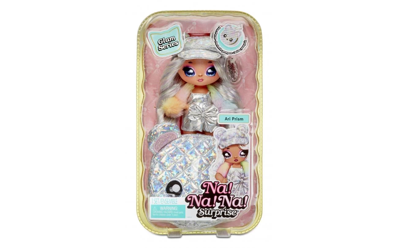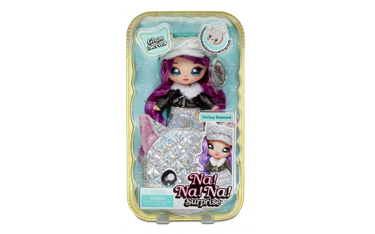 Geef je leven nog meer glamour met de Na! Na! Na! Surprise 2-in-1 zachte modepop uit de Glam-serie! De Glam-serie glinstert als nooit tevoren door de adembenemende poppenmode met dierenthema en een tasje van metallic stof; Perfect om het aan je rugzak of aan een grotere tas te hangen.