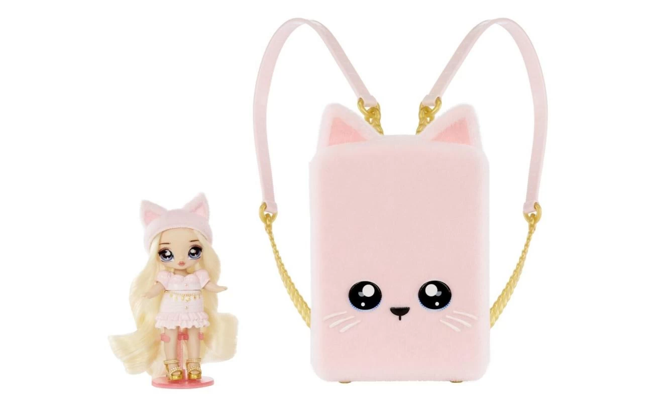 - FUNCTIONELE, PLUIZIGE MINIRUGZAK: rugzakken zijn nog nooit zo schattig geweest. Deze pluizige minirugzak lijkt op een kitten en heeft gegoten bandjes voor speelplezier onderweg. Inclusief 1 minimodepop!