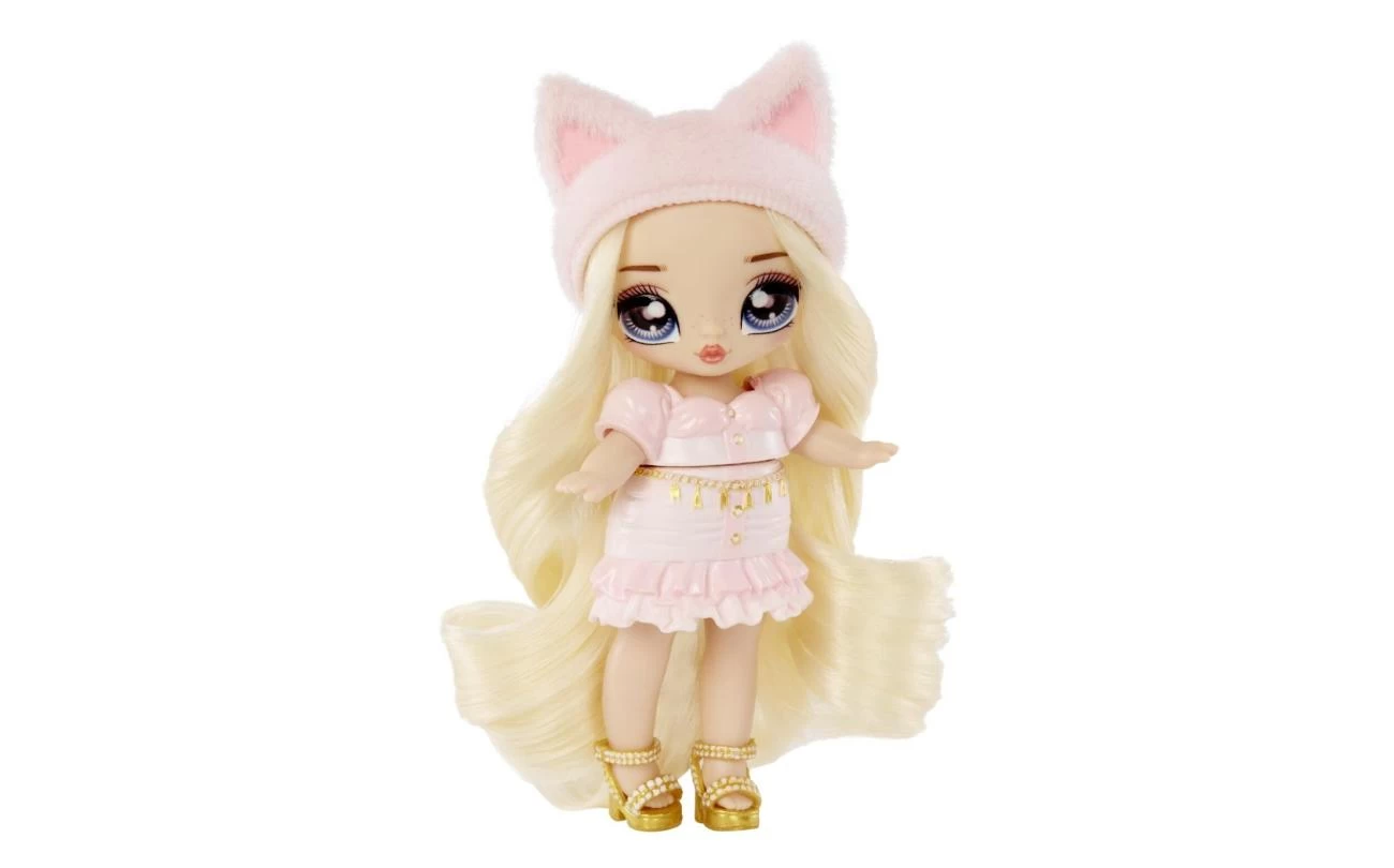 - PARIJSE KITTEN-MINIPOP: maak kennis met Amelie Laurent! Haar leven is très magnifique. Ze is 10 cm groot, heeft lang, geworteld, golvend blond haar in een middenscheiding en een pluizige beanie met kittenthema. Ze draagt een blouse met pofmouwen en knoopjes, een rok met ruches, een ‘NA NA NA’-kettingriem en gegoten hoge hakken met bandjes en diamanten.