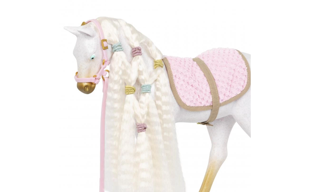 Neem dan je Our Generation bestie en spring op het comfortabele roze zadel om in stijl door het platteland te galopperen!