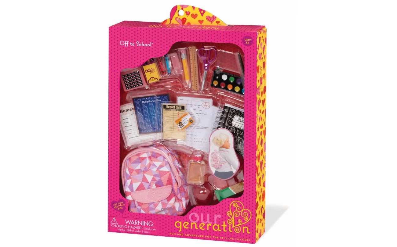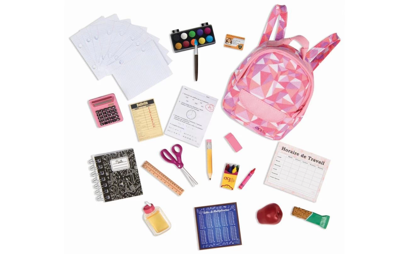 Deze schattige roze rugzak heeft een coole geometrische print, een opbergvak aan de voorkant en een grote binnenzak die je kunt vullen met al je poppenschoolspullen. Van schriften, gelinieerd papier en een huiswerkschema tot potloden, gummen en scharen. Deze schoolaccessoireset voor poppen is alles wat je nodig hebt voor 10/10 schoolavonturen! Welke les volgt jouw Our Generation het liefst?