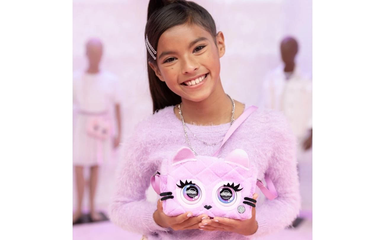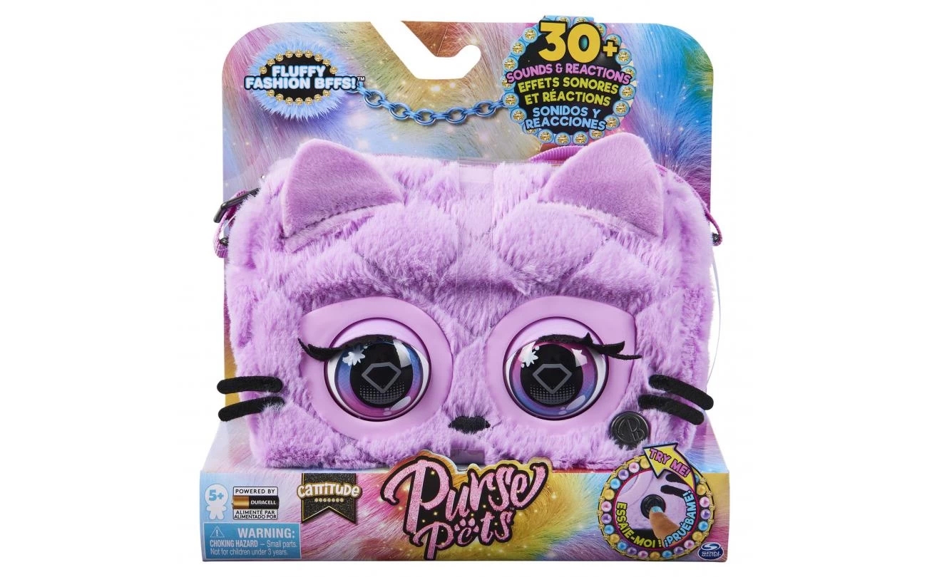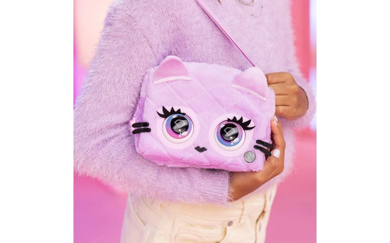 - Deze trendy kinderhandtas heeft expressieve ogen die echt knipperen. Onderweg knippert je Purse Pet met haar ogen en communiceert ze met je. Geef haar een knuffel en ze maakt de schattigste geluiden