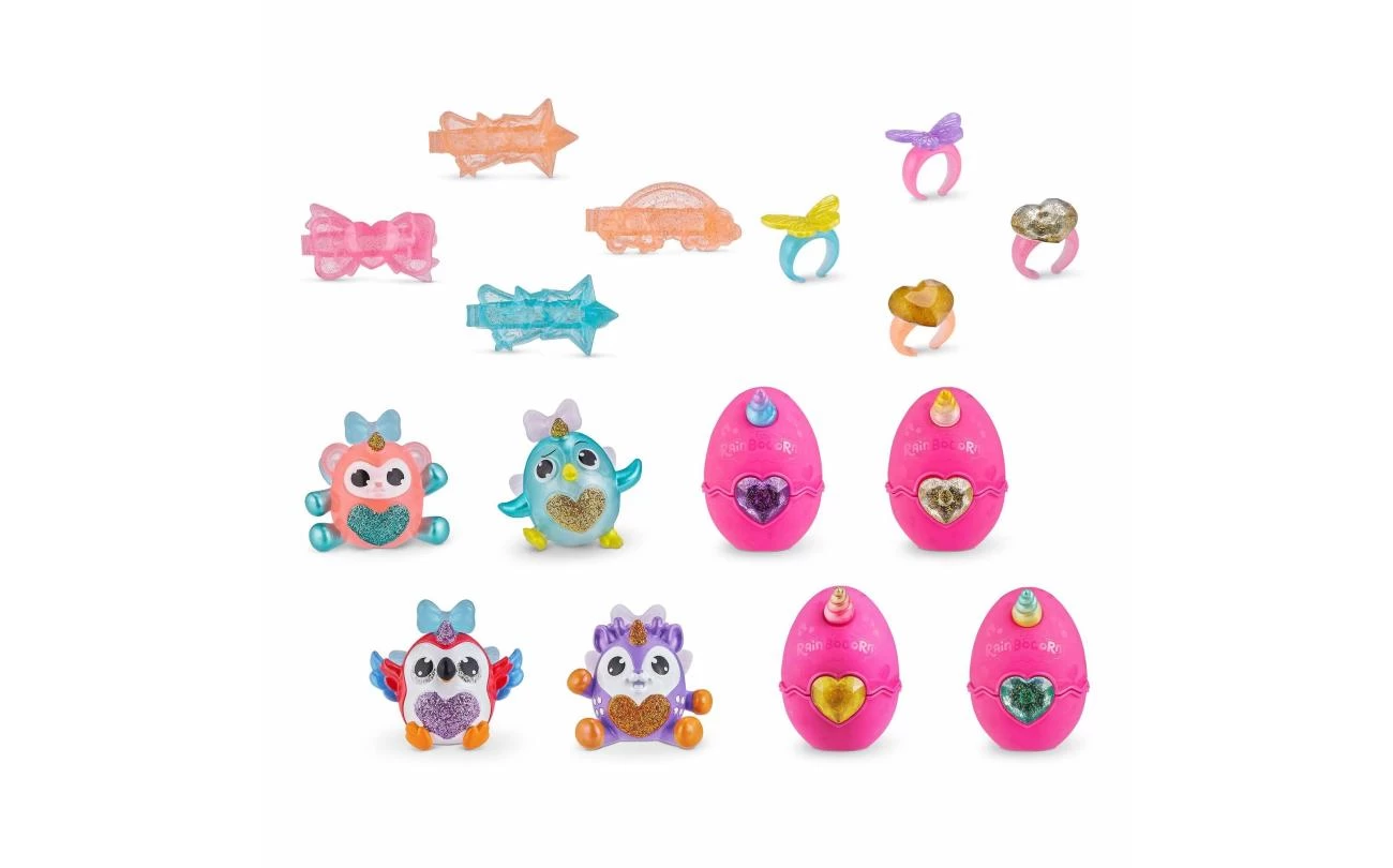Open de Itzy Glitzy-verrassingseieren en ontmoet de NIEUWE Itzy Glitzy Rainbocorns en al hun magische verrassingen erin! Er zijn 26 Itzy Glitzy-personages om te verzamelen, waaronder Glimmer de zeldzame gouden olifant en Tinks zilveren uil! De Itzy Glitzy Rainbocorns komen met zoveel verrassingen, inclusief NIEUWE verrassende kleur veranderende accessoires! Verzamel de Pop en Swap Gem Hearts, haarspeldjes, ringen, strikken en vleugels! Mix en match je van kleur veranderende accessoires tussen je Itzy Glitzy’s en verzamel en ruil ze allemaal! Wie ga je vinden?