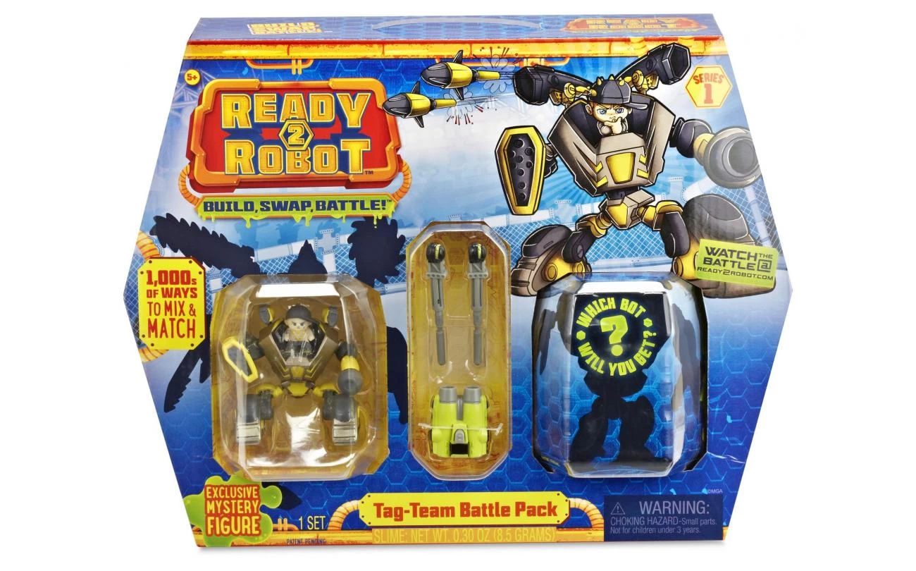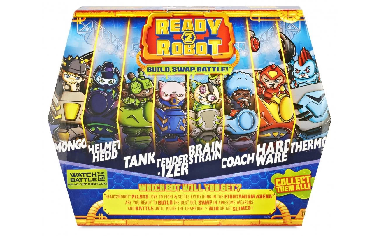 De enige verzamelreeks voor jongens waarmee je eigen robots kunt maken, mixen en matchen, en tegen je vrienden kunt strijden in een robotgevecht in de Fightanium Arena. Pak meer robots uit, bouw je ultieme vechtmachine en knal je een weg naar het ultieme kampioenschap! De robot die als laatste overblijft, wordt overladen met roem en applaus! Ready2Robot-vechtpakketten bevatten alles wat je nodig hebt voor het ultieme gevecht! Met 2 mechbots en 4 piloten kun je je meteen uit de verpakking in het gevecht storten. Meer dan 10 lagen om uit te pakken en 20 onderdelen in totaal: je kunt je mechbots dan ook op honderden verschillende manieren aanpassen voor gevechten!