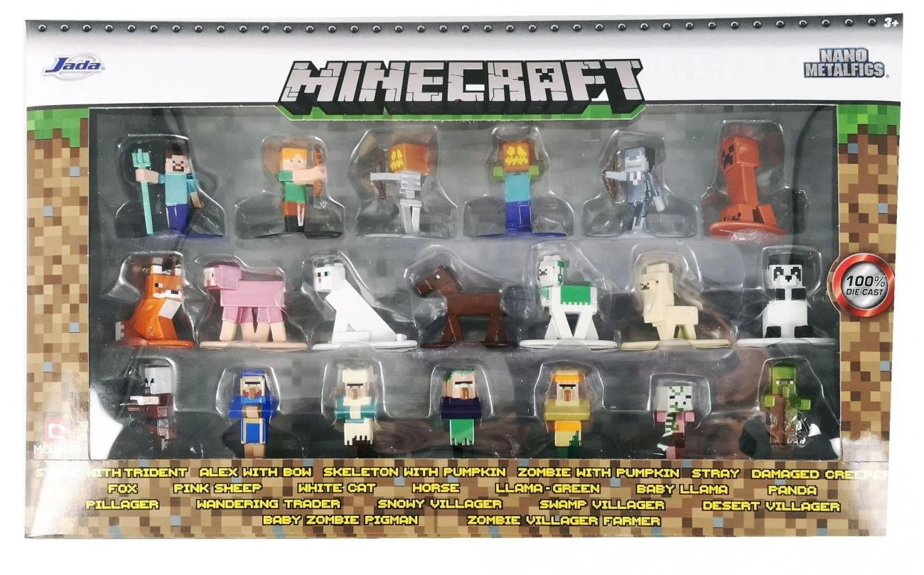 Set van 20 metalen Minecraft figuren van de beroemdste personages uit de videogame.