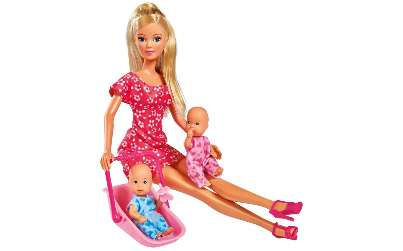 Babysitter Steffi zorgt voor de 2 baby’s tegelijk, één op de arm en de ander in de draagstoel. Met de verschillende accesoires speelt en zorgt ze de ganse dag door voor de baby’s. Wat zijn ze blij als ze haar weer zien!