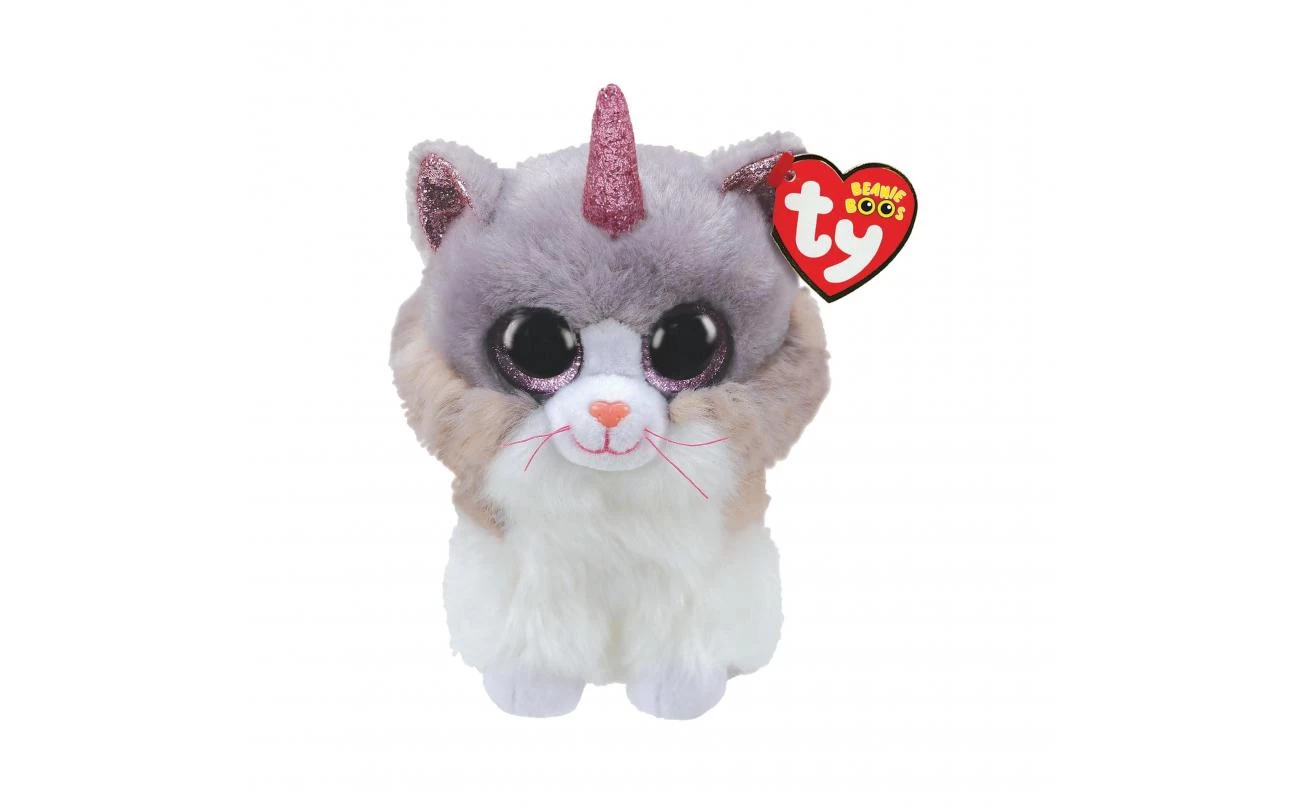 Asher de Kat van TY Beanie Boo is helemaal klaar om geknuffeld te worden. Deze leuke pluche knuffeldier is 15 cm groot en heeft een magische glitter hoorn op haar hoofdje.