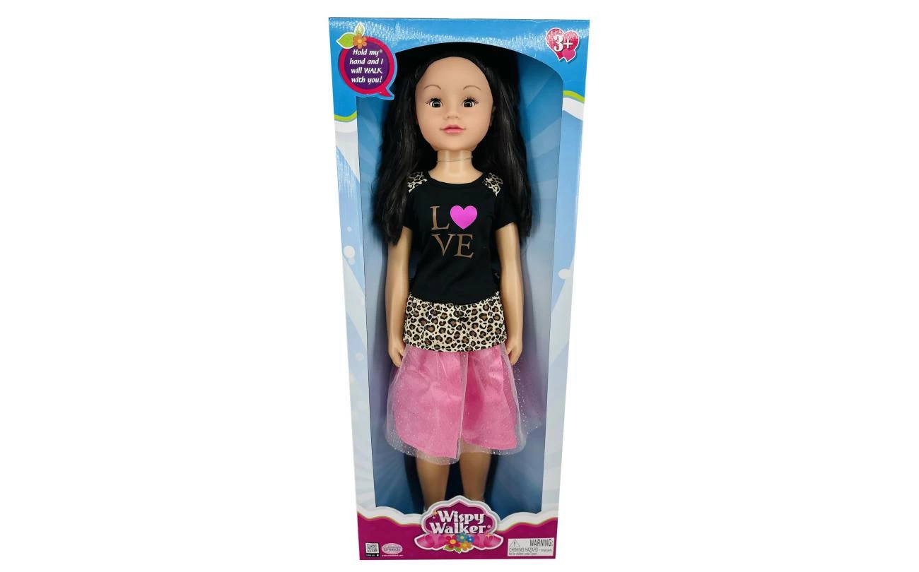 Deze grote pop van 81cm loopt als een zus mee aan je hand.