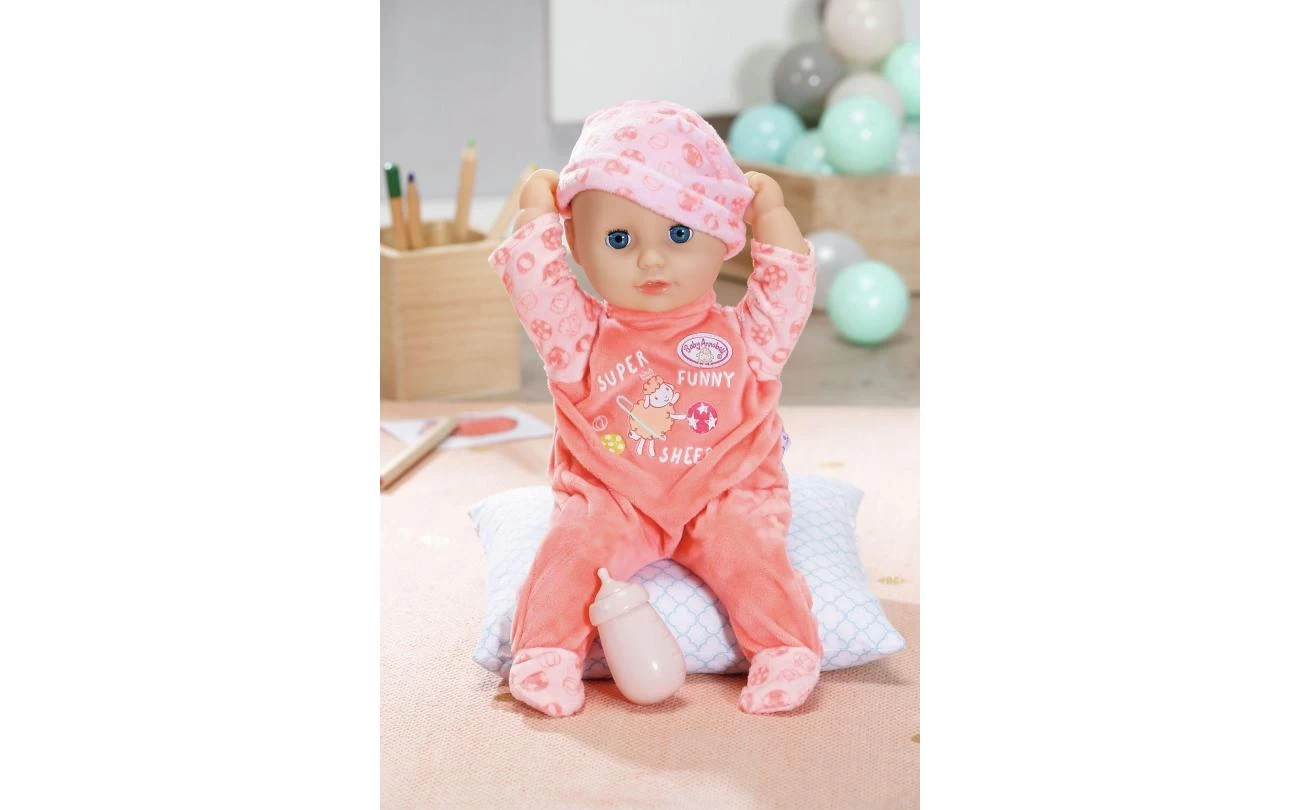 “”””Goedemorgen! Dit wordt een hele leuke dag!”””” Little Annabell met haar zachte, stoffen lichaam is een vroege vogel. Zodra de zon op is, wil ze dolgraag spelen. Maar eerst moet ze natuurlijk ontbijten. Nadat ze van haar flesje heeft gedronken, wil ze spelen en knuffelen. Als dit schatje moe van het spelen is en je haar op haar rug legt, sluit ze haar blauwe ogen. Laat je haar zitten, dan neemt ze alles aandachtig in zich op tot zonsondergang. De avondhemel heeft dezelfde kleur als het speelpakje van Little Annabell. Met zo’n supermooie zachte onesie in een abrikooskleurige tint en een bijpassend mutsje hoeft dit kleintje helemaal geen pyjama aan te trekken. Het speelpakje is zo ontworpen, dat zelfs de kleinste handen het met gemak aan en uit kunnen trekken.